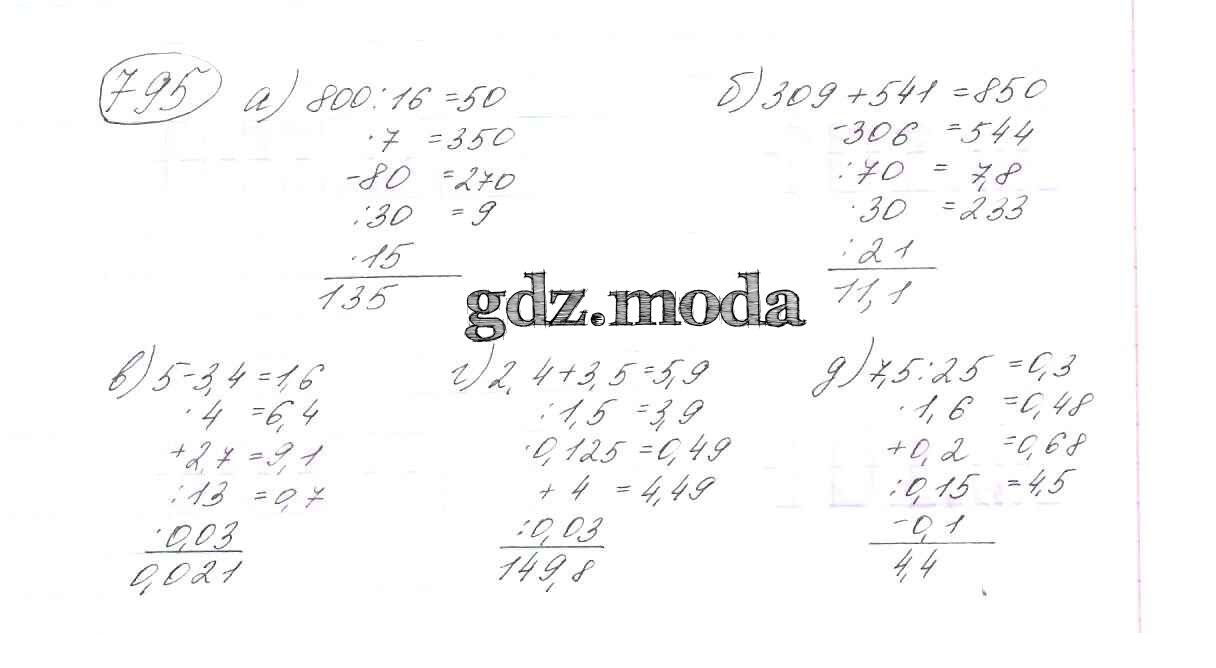 ОТВЕТ на задание № 795 Учебник по Математике 6 класс Виленкин