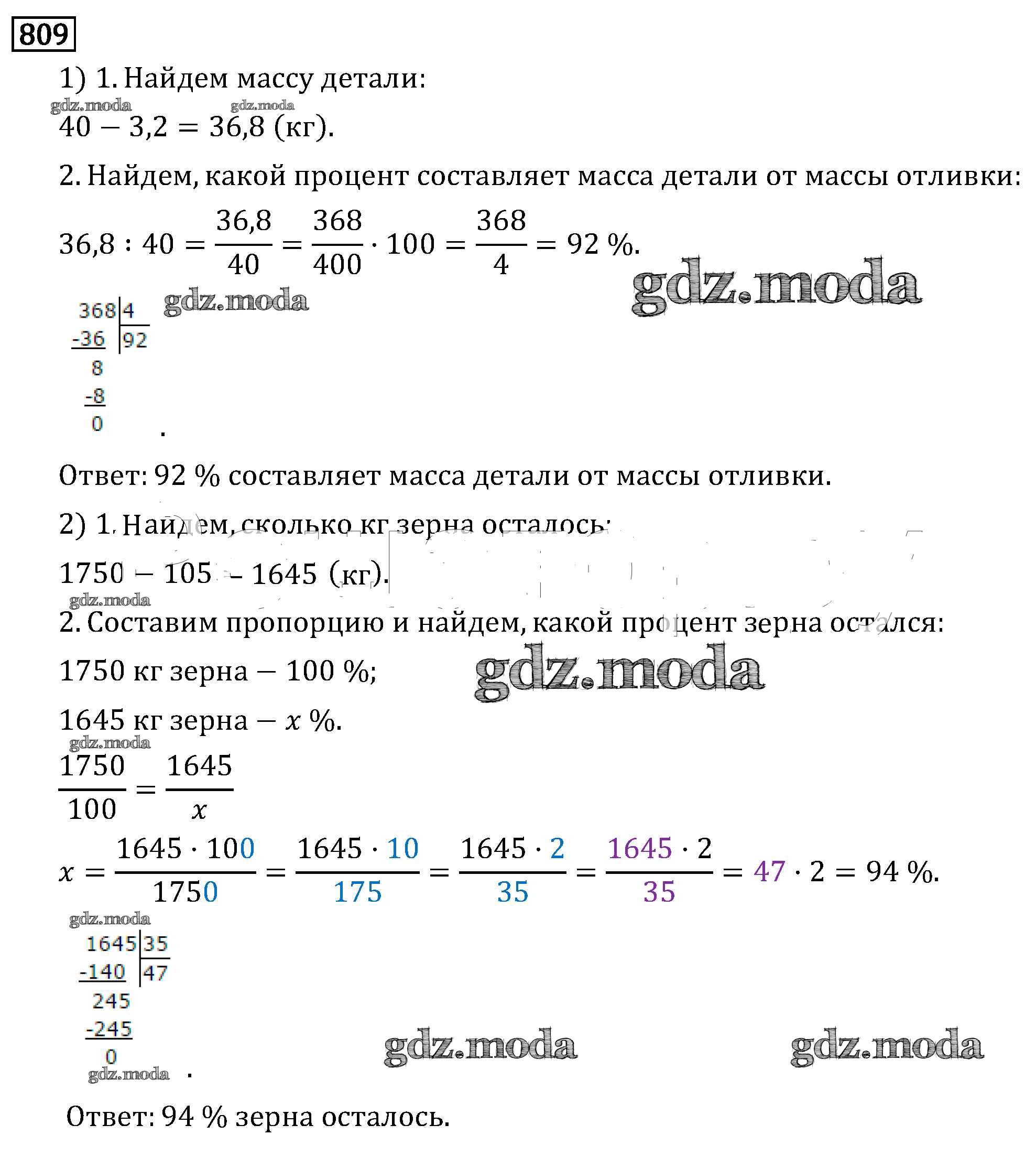 ОТВЕТ на задание № 809 Учебник по Математике 6 класс Виленкин