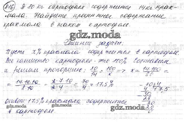 ОТВЕТ на задание № 816 Учебник по Математике 6 класс Виленкин