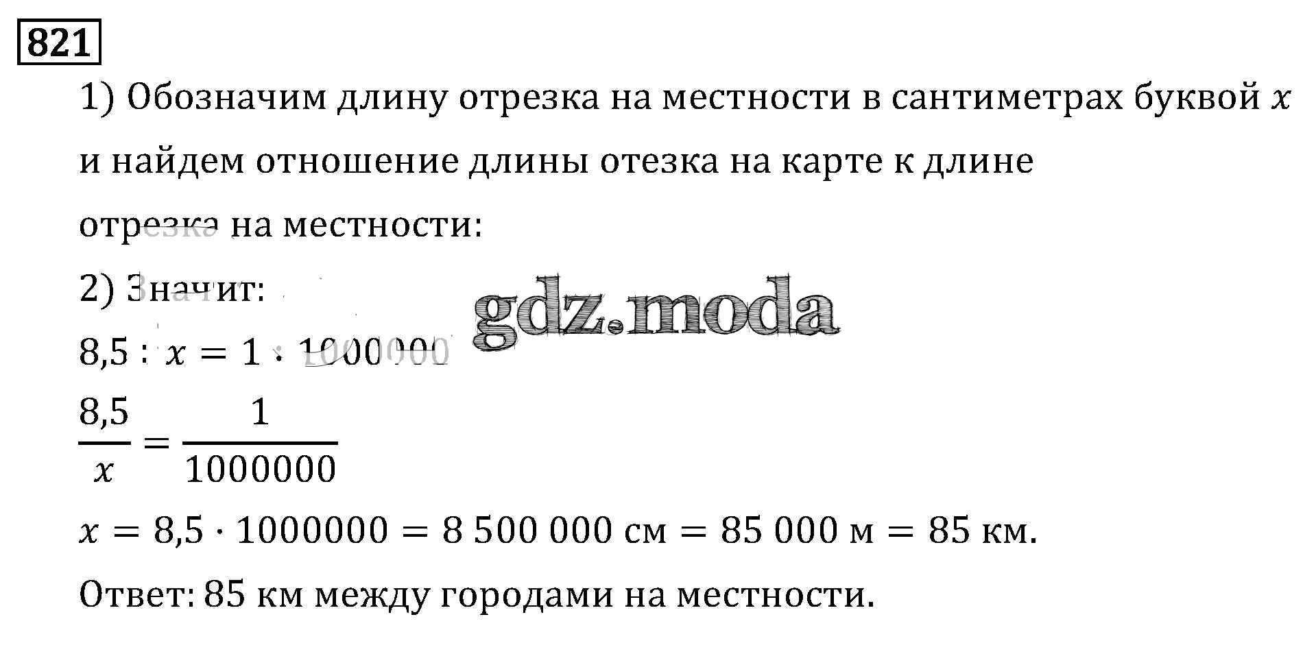 ОТВЕТ на задание № 821 Учебник по Математике 6 класс Виленкин