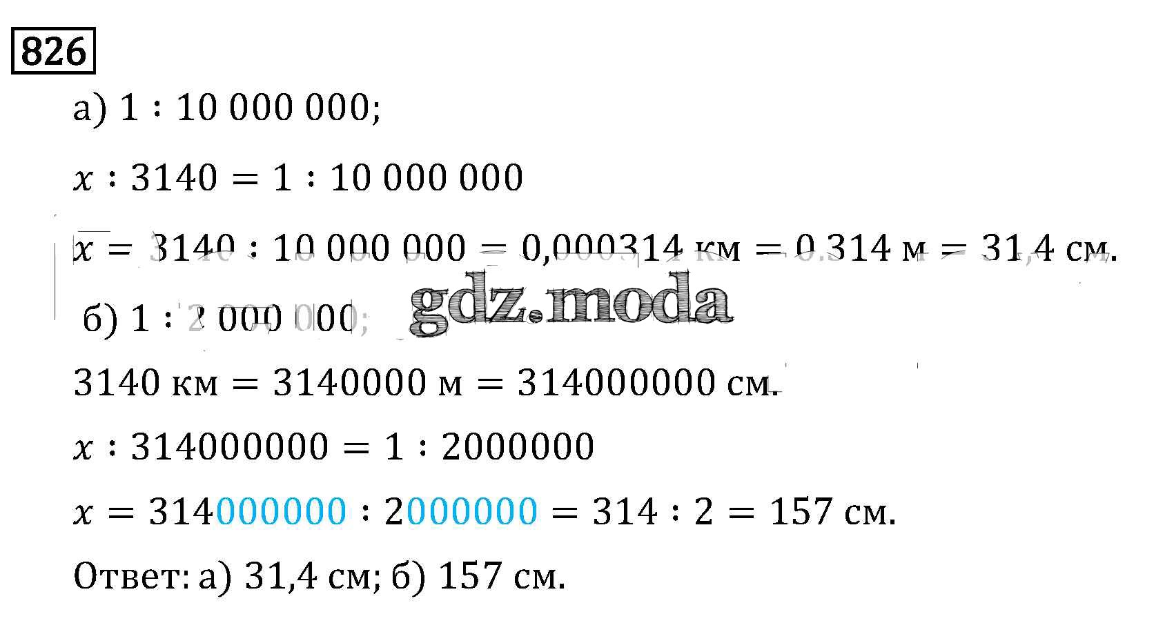 ОТВЕТ на задание № 826 Учебник по Математике 6 класс Виленкин