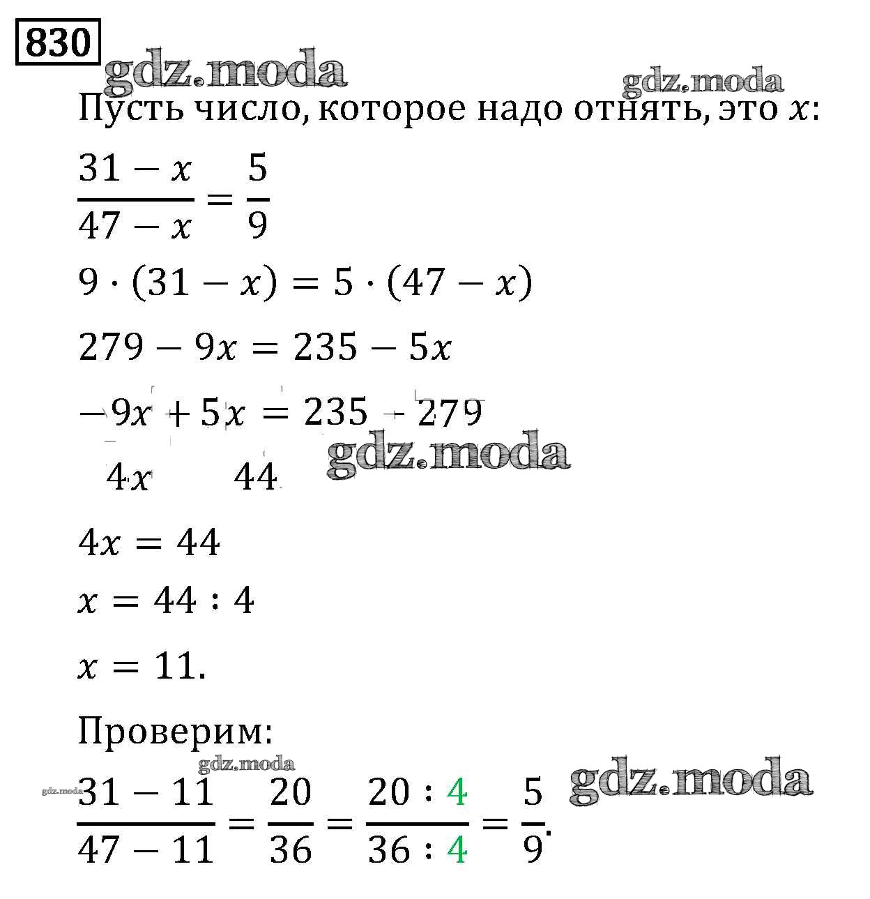 ОТВЕТ на задание № 830 Учебник по Математике 6 класс Виленкин