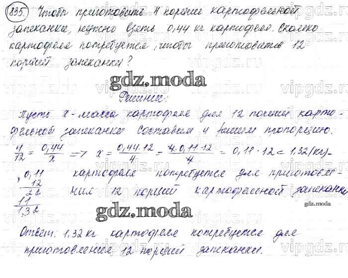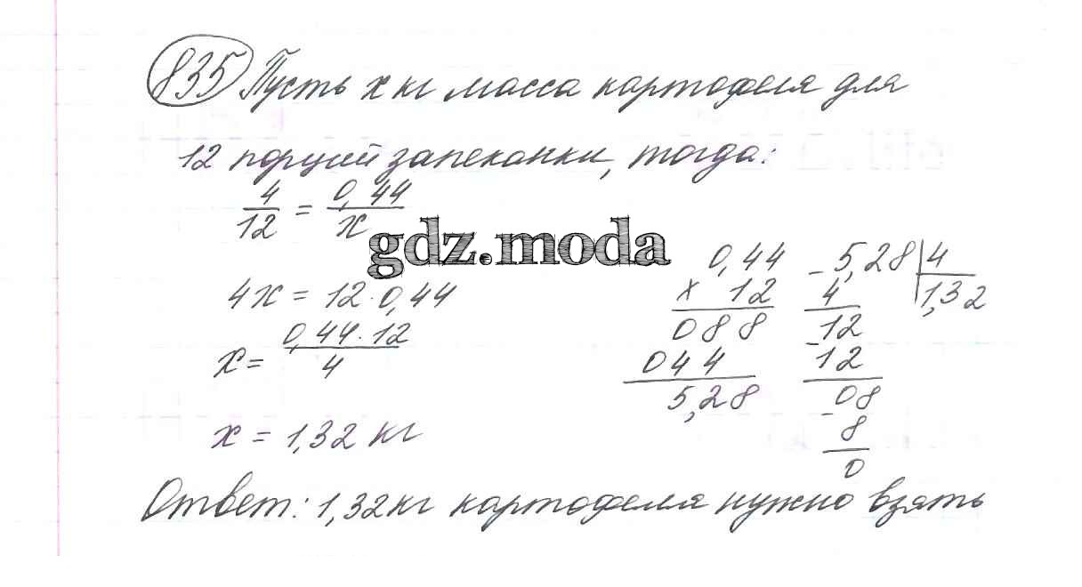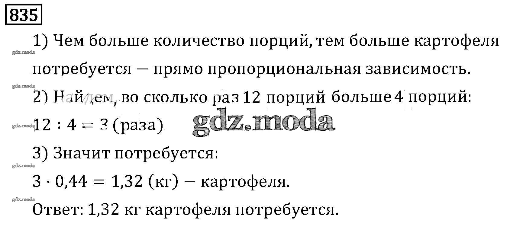 ОТВЕТ на задание № 835 Учебник по Математике 6 класс Виленкин