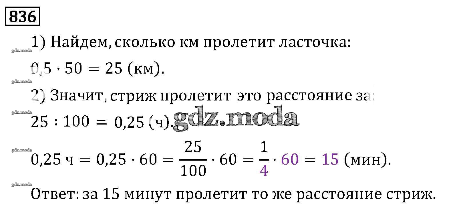 ОТВЕТ на задание № 836 Учебник по Математике 6 класс Виленкин
