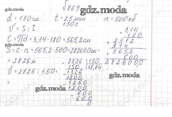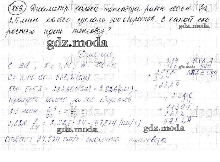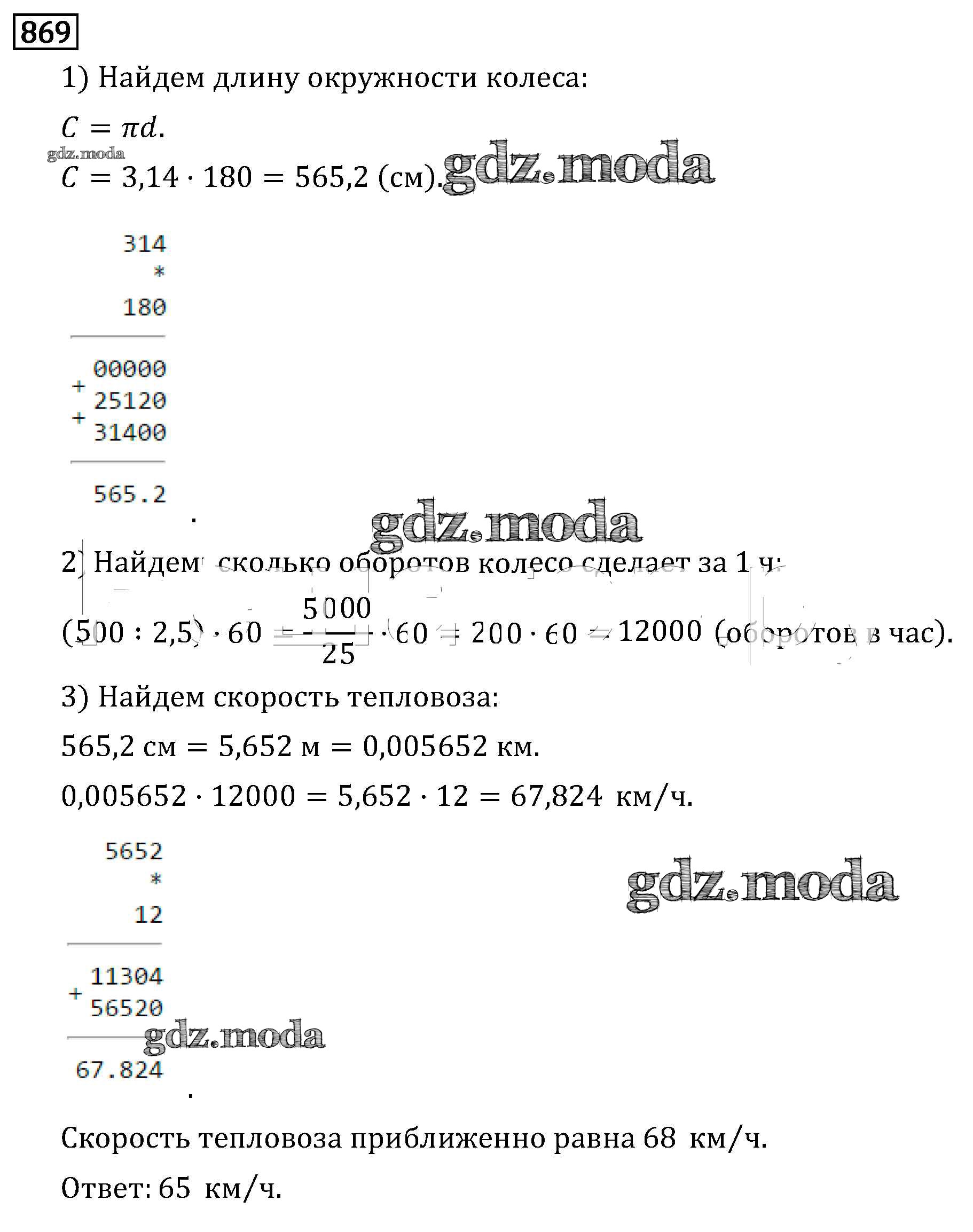 ОТВЕТ на задание № 869 Учебник по Математике 6 класс Виленкин