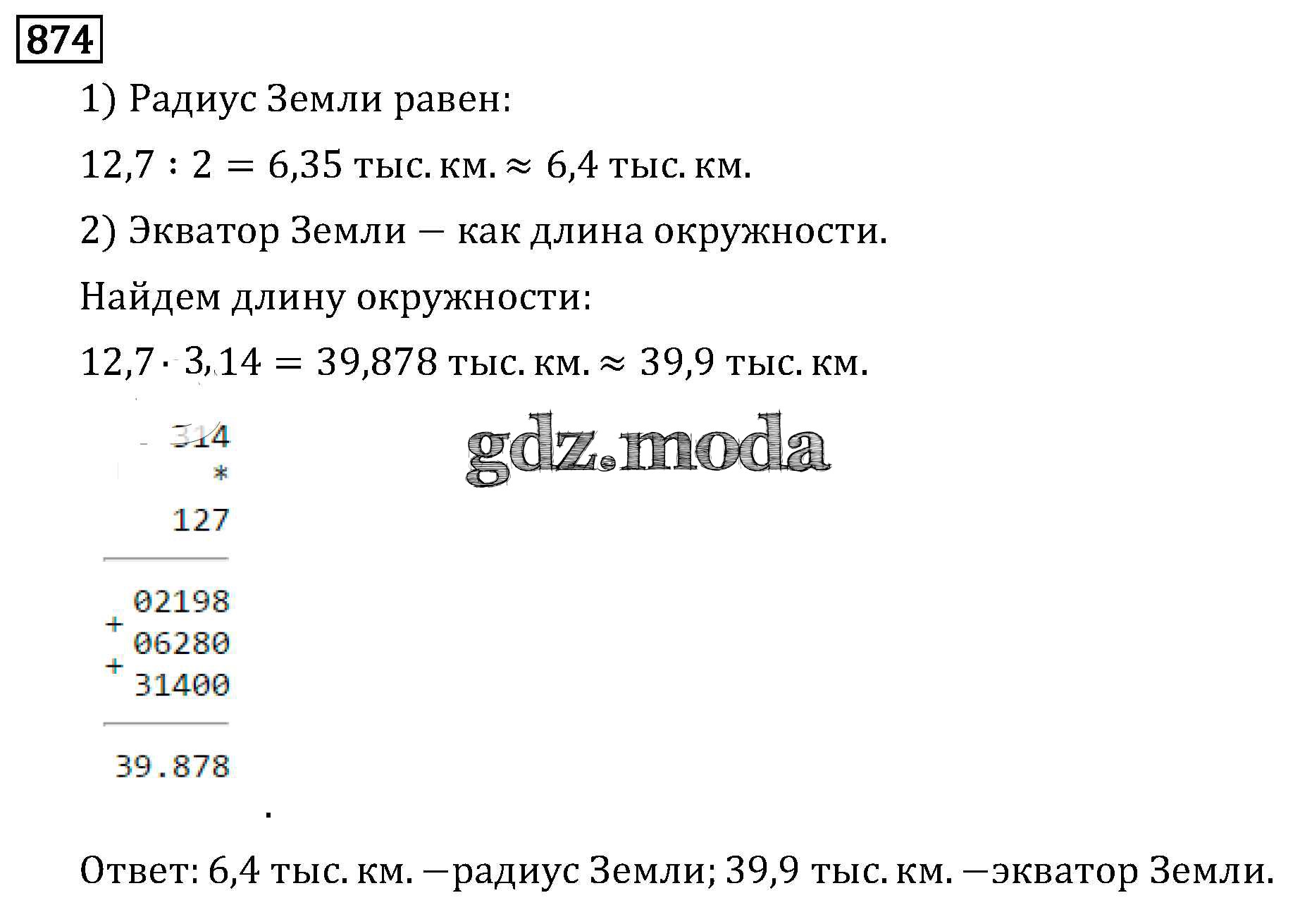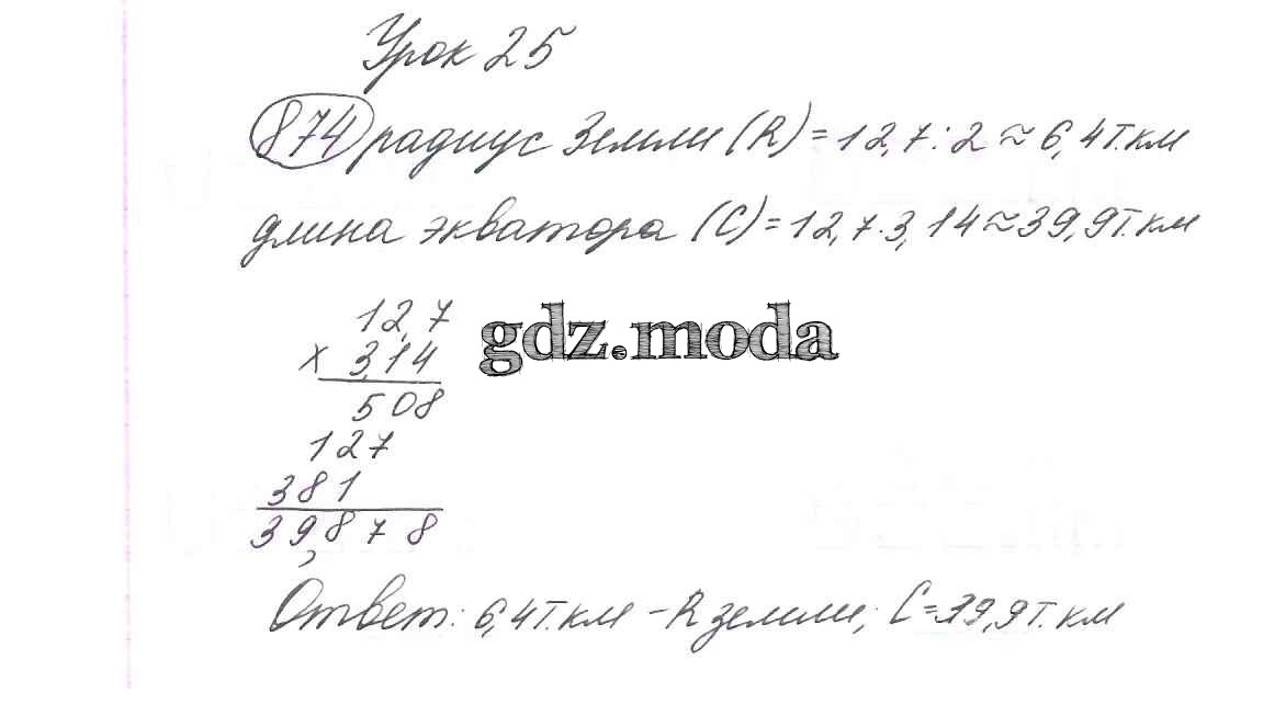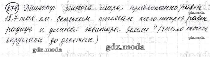 ОТВЕТ на задание № 874 Учебник по Математике 6 класс Виленкин