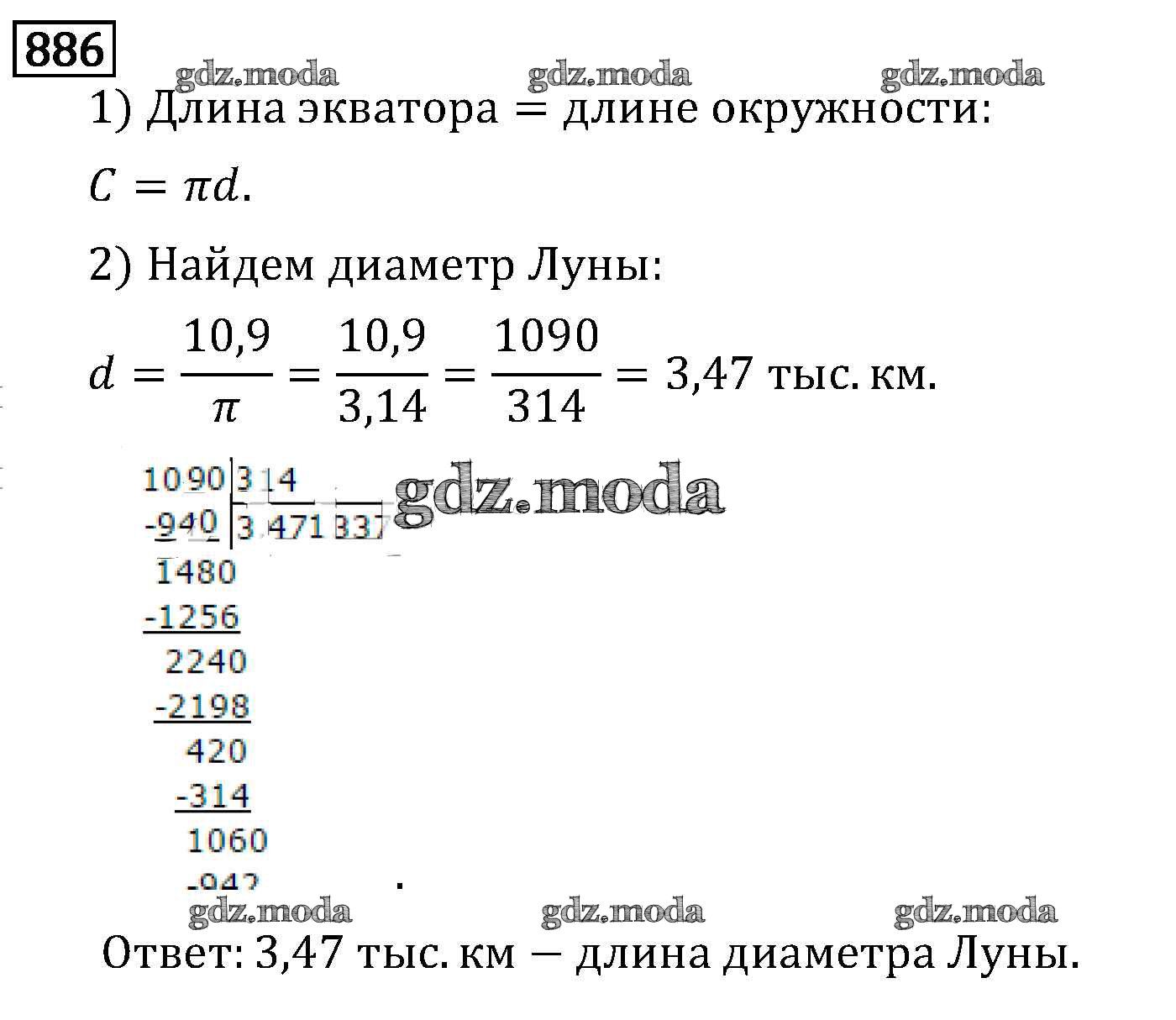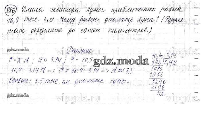 ОТВЕТ на задание № 886 Учебник по Математике 6 класс Виленкин