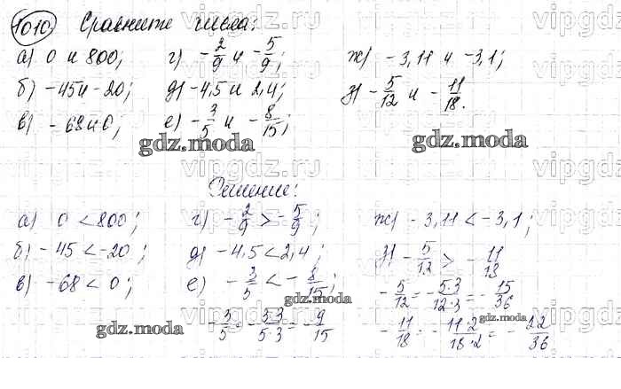 ОТВЕТ на задание № 1010 Учебник по Математике 6 класс Виленкин