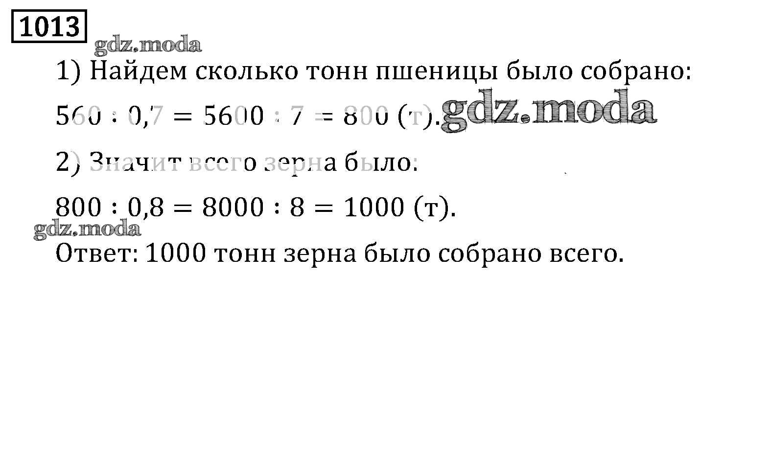 ОТВЕТ на задание № 1013 Учебник по Математике 6 класс Виленкин
