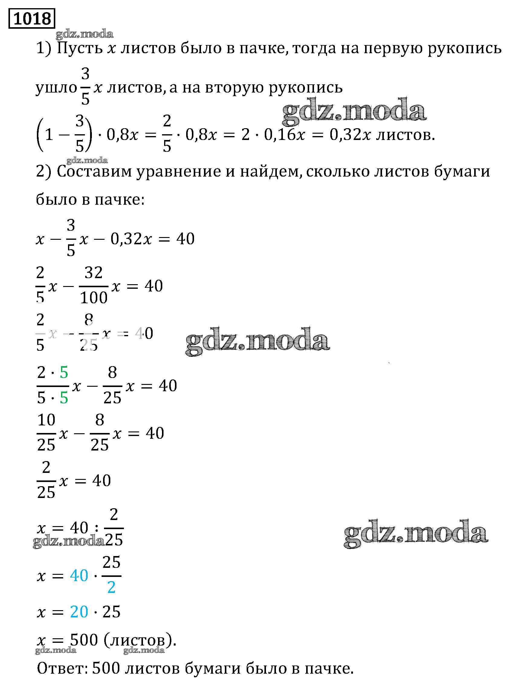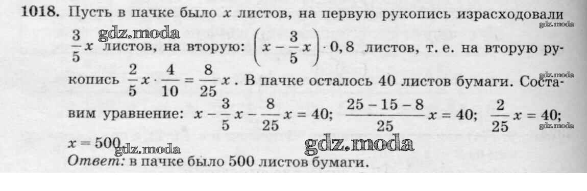 ОТВЕТ на задание № 1018 Учебник по Математике 6 класс Виленкин