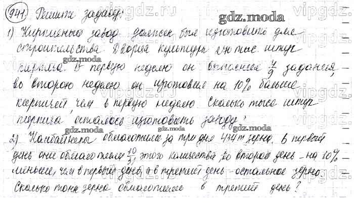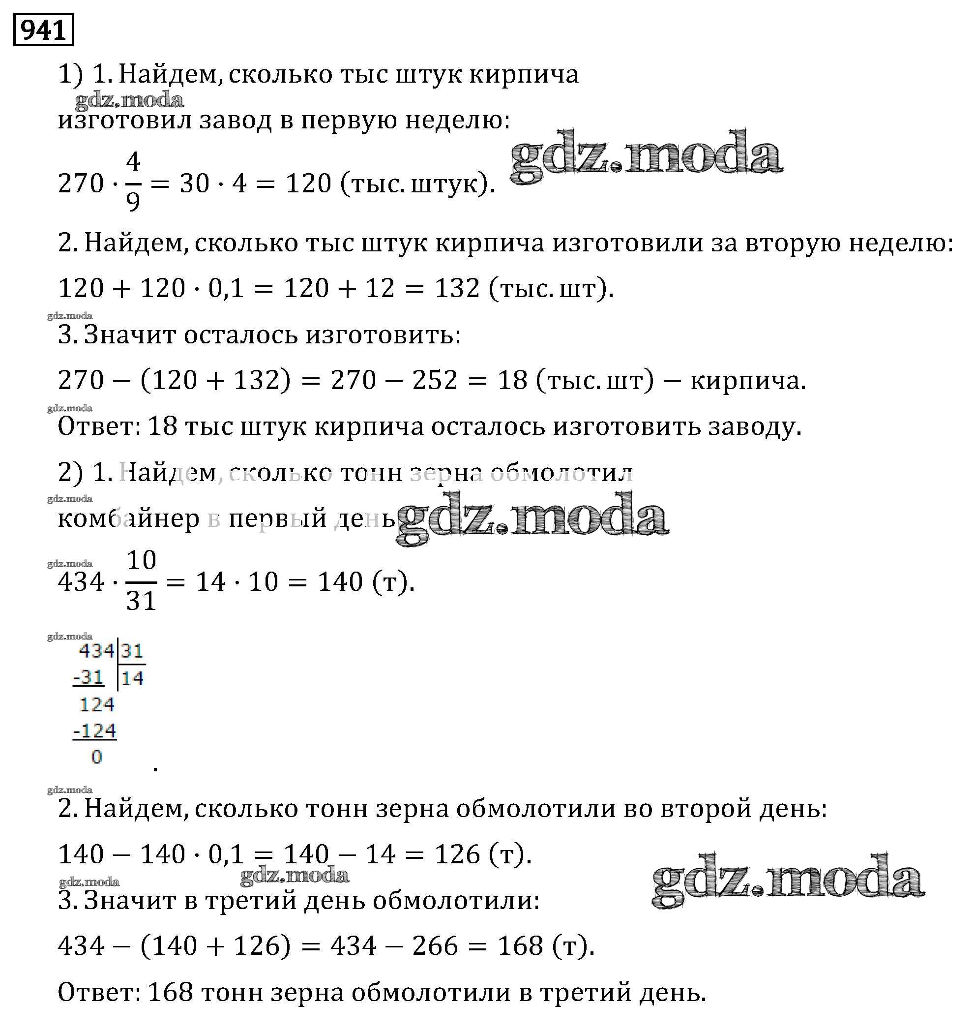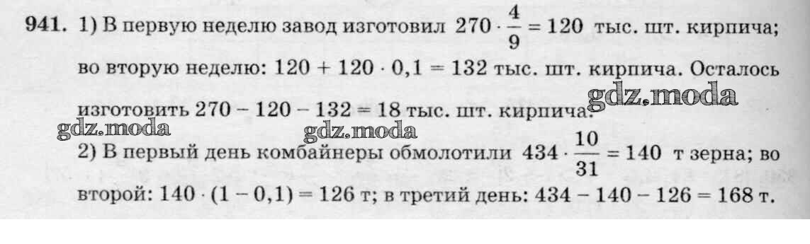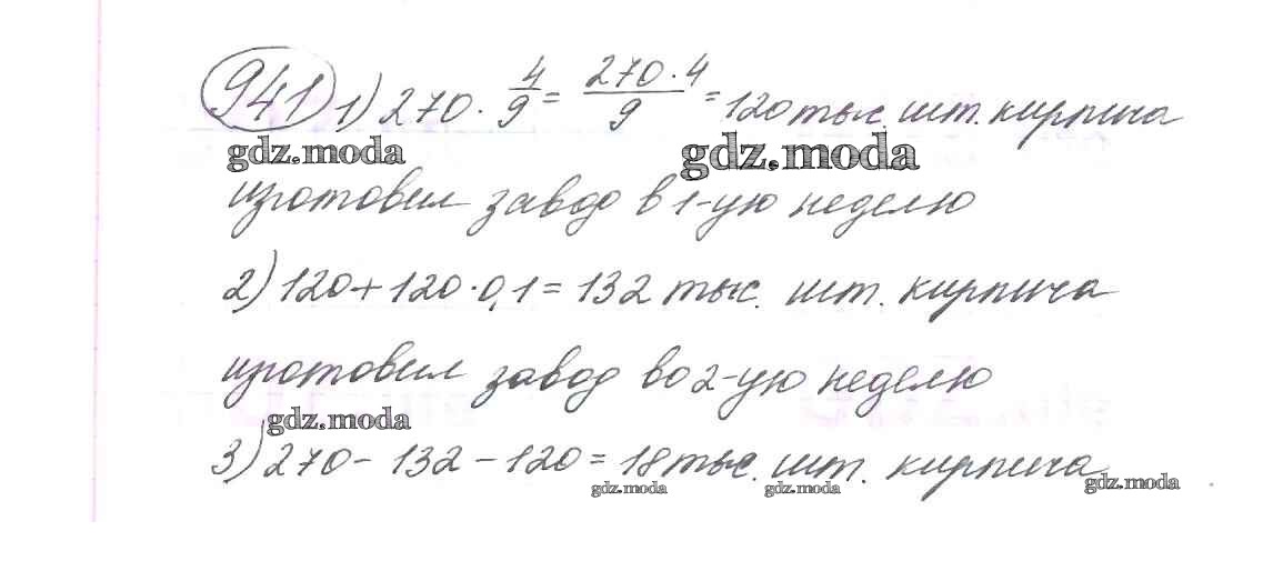 ОТВЕТ на задание № 941 Учебник по Математике 6 класс Виленкин
