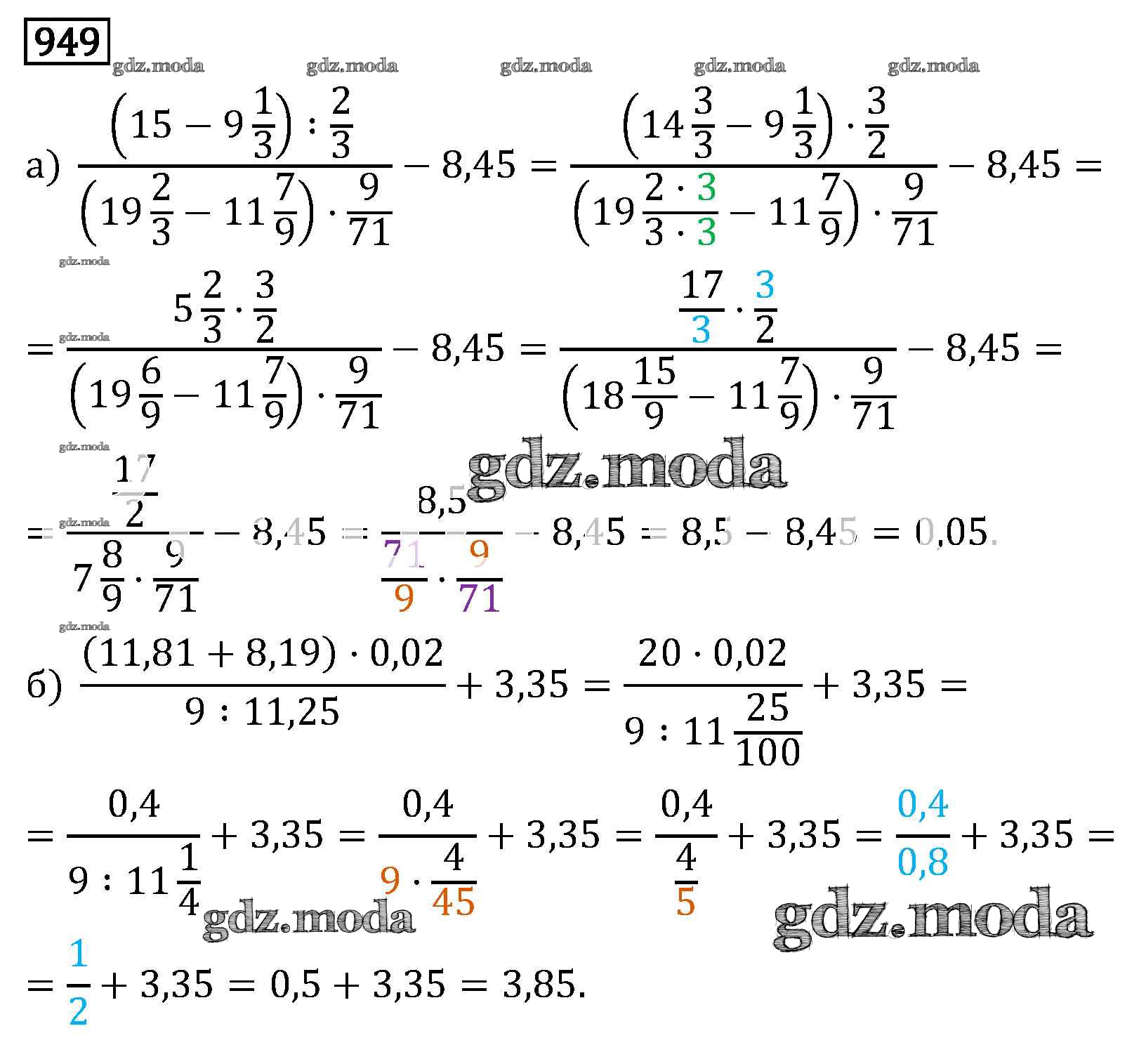 ОТВЕТ на задание № 949 Учебник по Математике 6 класс Виленкин