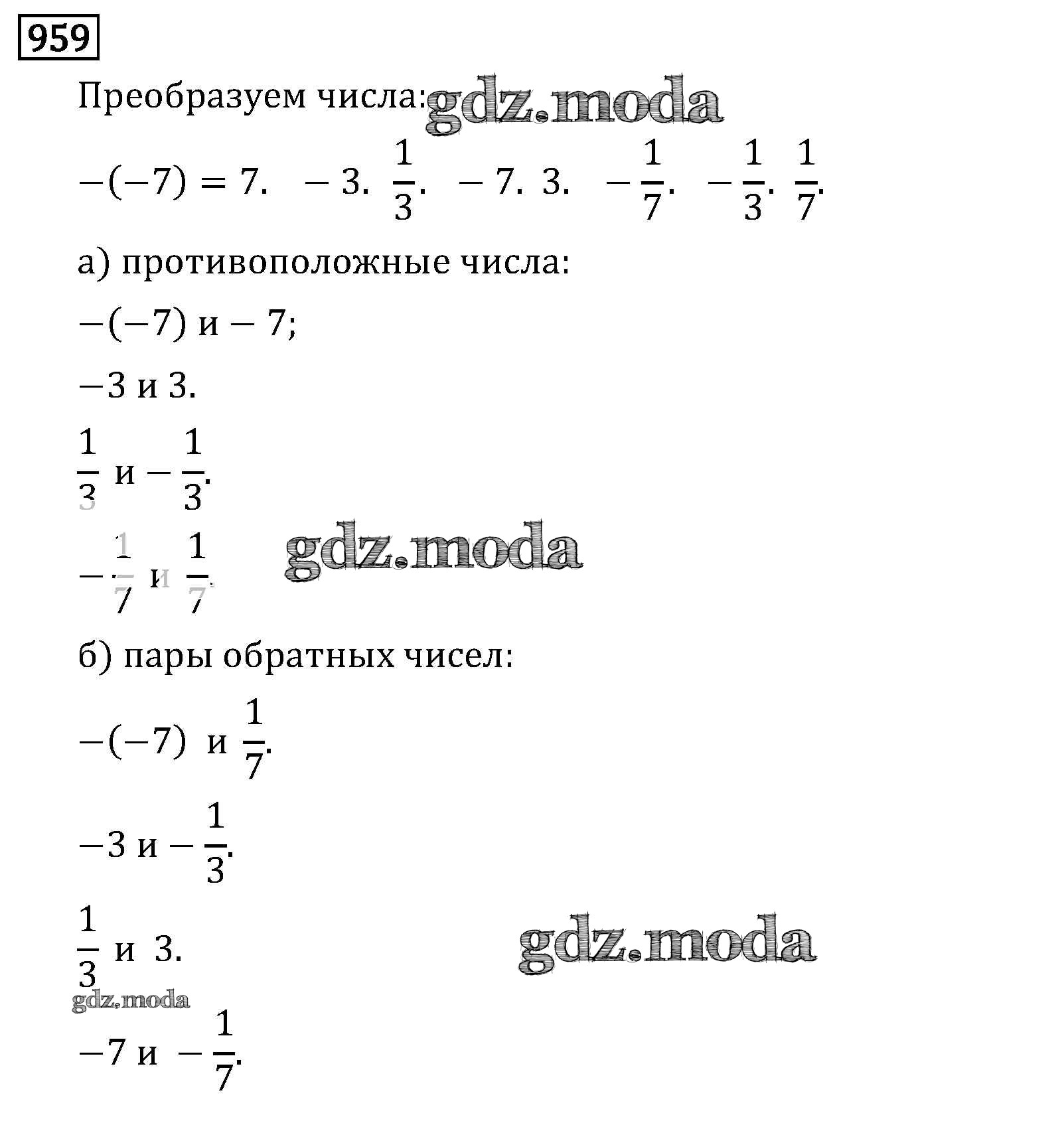 ОТВЕТ на задание № 959 Учебник по Математике 6 класс Виленкин