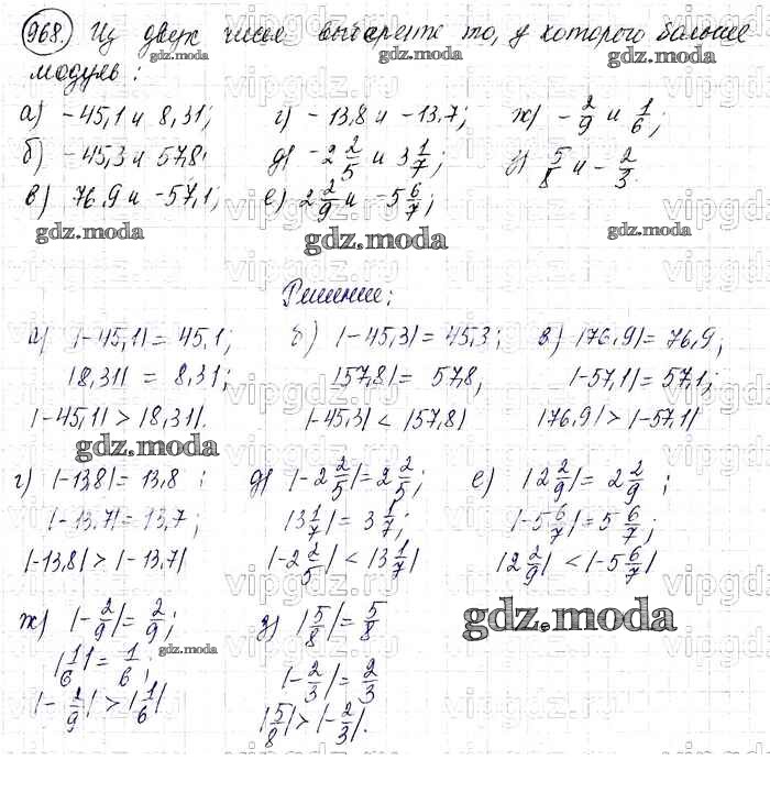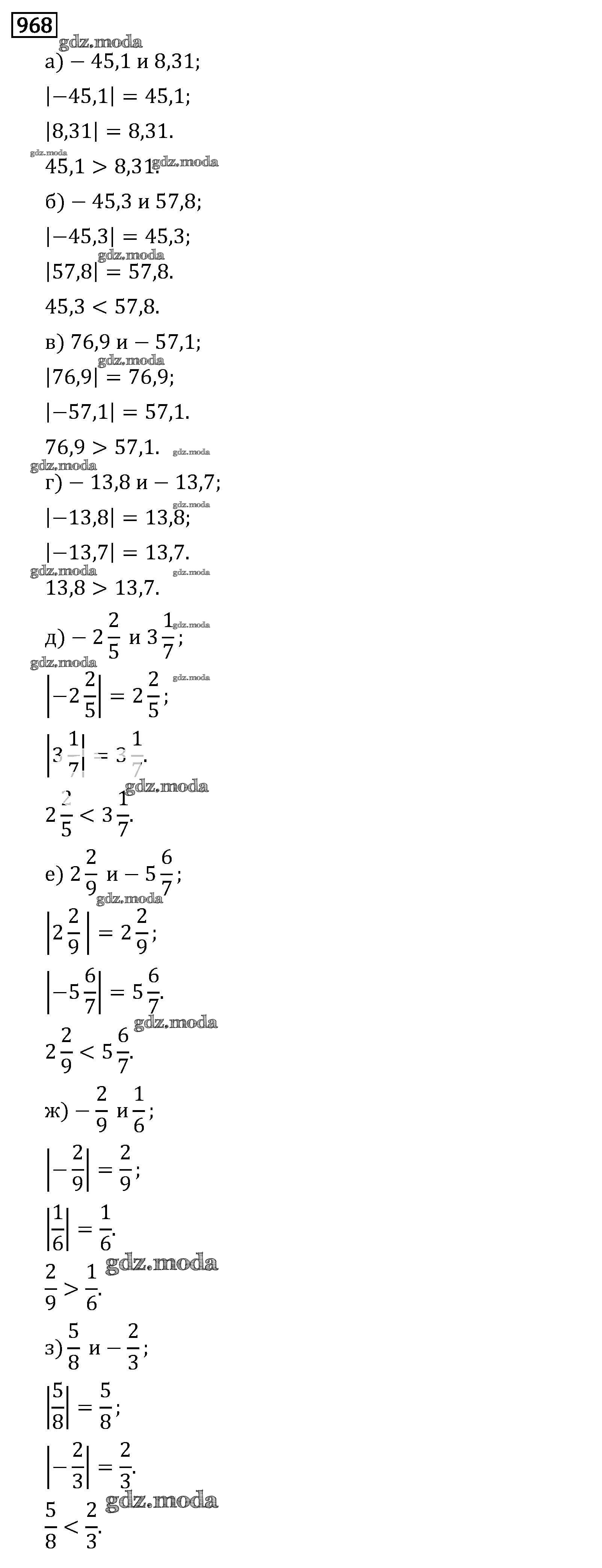 ОТВЕТ на задание № 968 Учебник по Математике 6 класс Виленкин