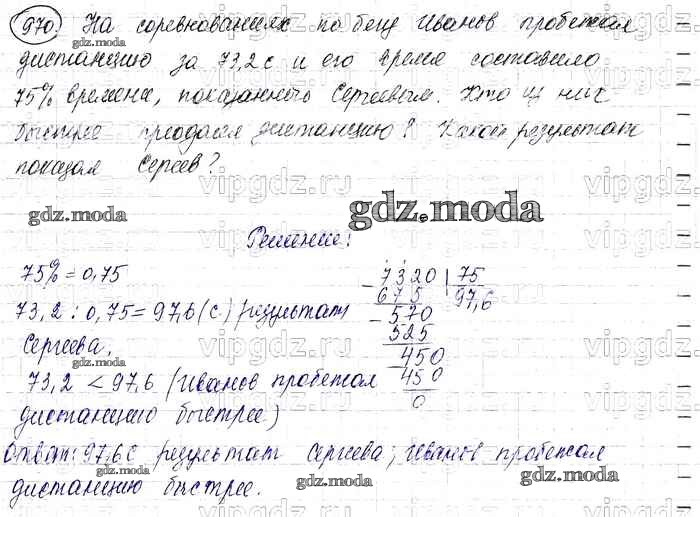 ОТВЕТ на задание № 970 Учебник по Математике 6 класс Виленкин