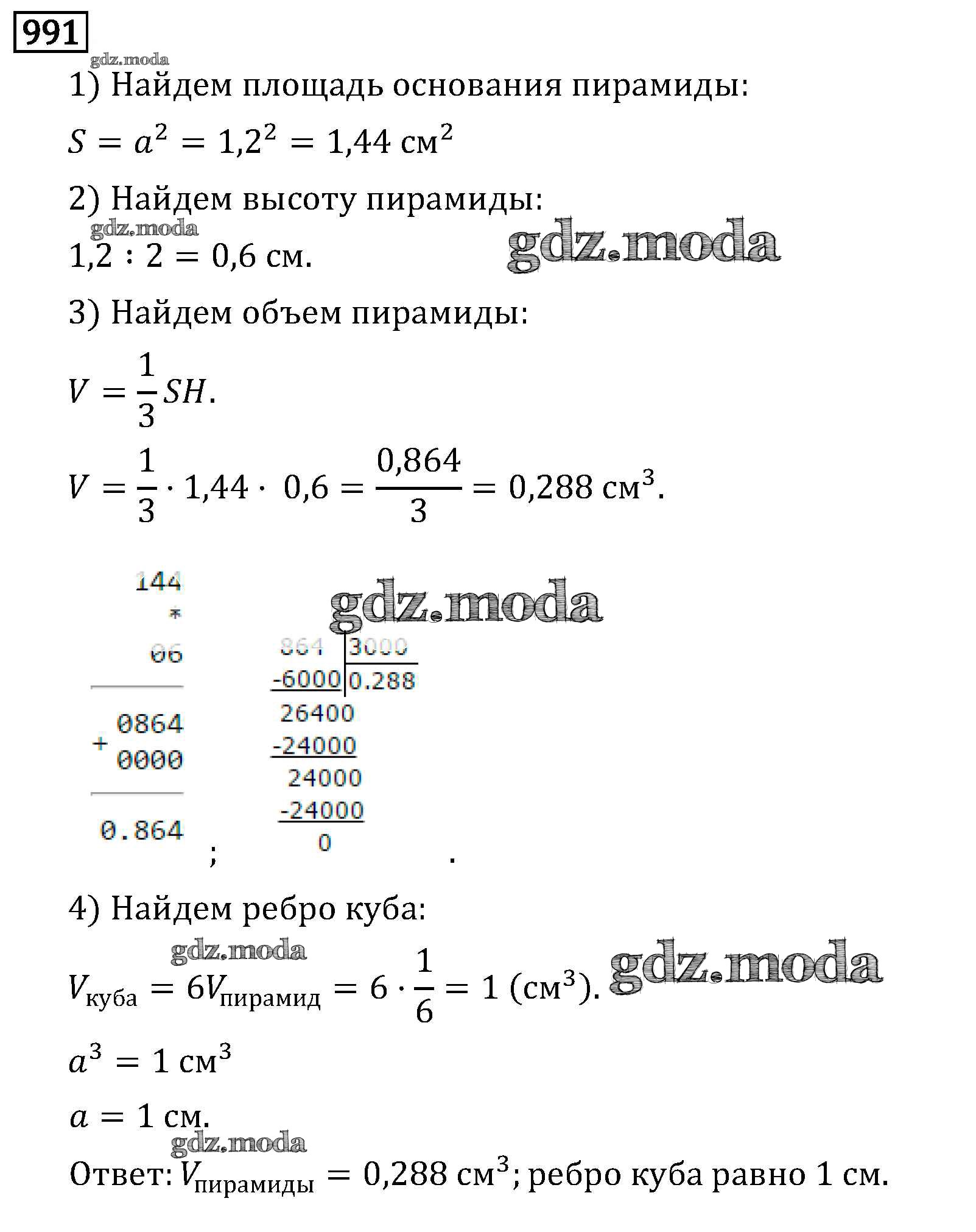 ОТВЕТ на задание № 991 Учебник по Математике 6 класс Виленкин