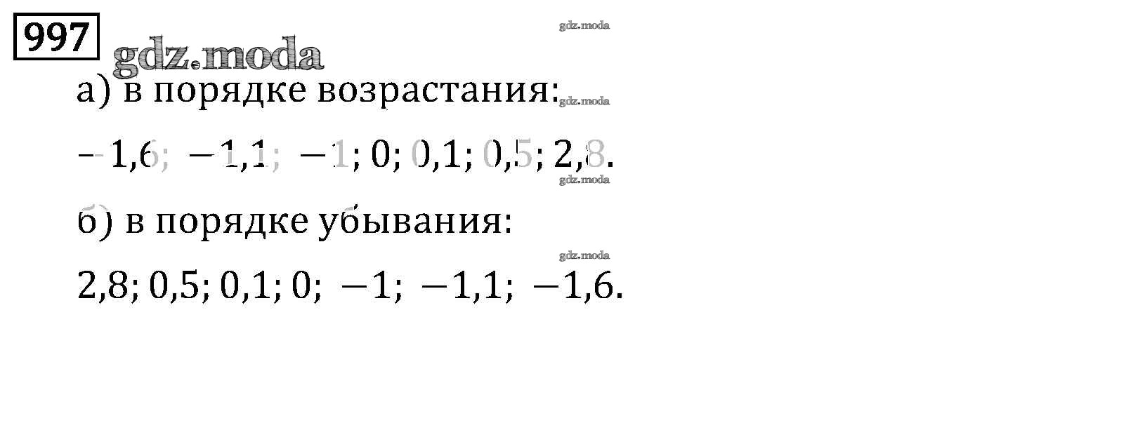 ОТВЕТ на задание № 997 Учебник по Математике 6 класс Виленкин