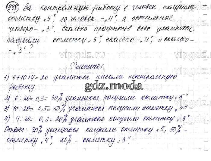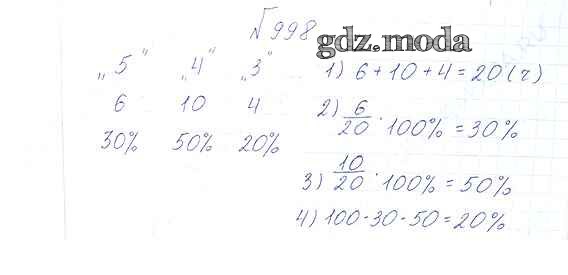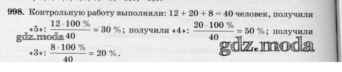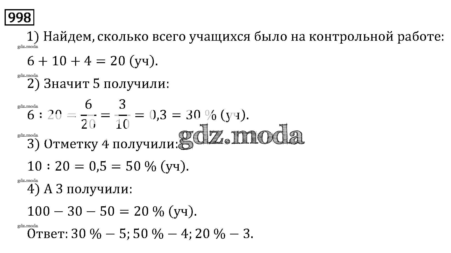 ОТВЕТ на задание № 998 Учебник по Математике 6 класс Виленкин