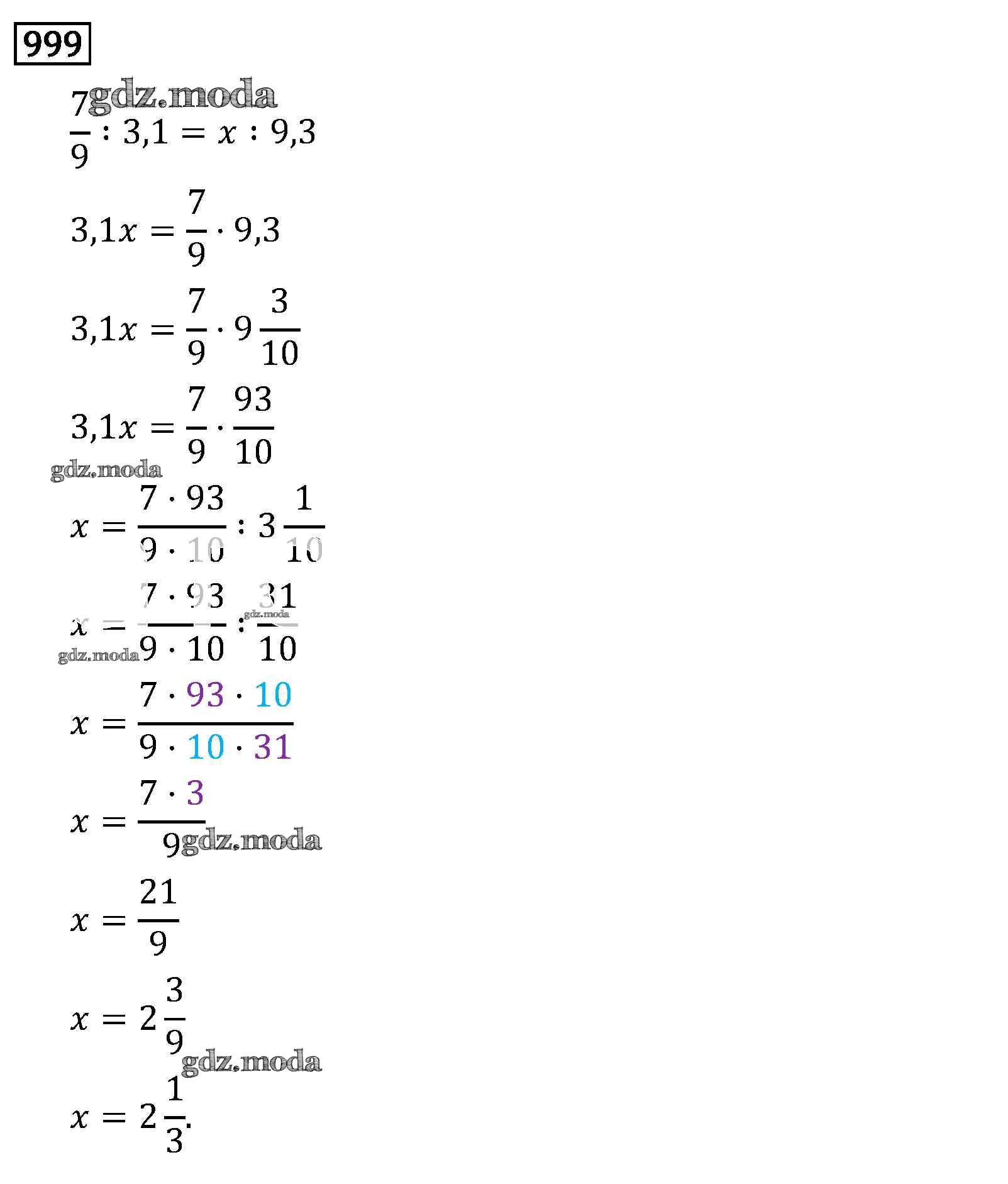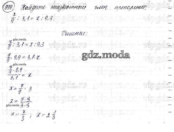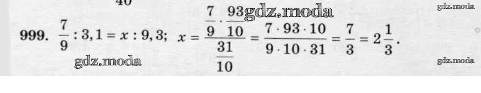 ОТВЕТ на задание № 999 Учебник по Математике 6 класс Виленкин