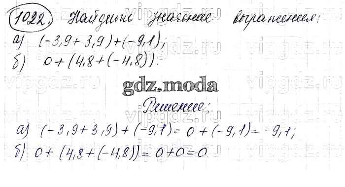 ОТВЕТ на задание № 1022 Учебник по Математике 6 класс Виленкин