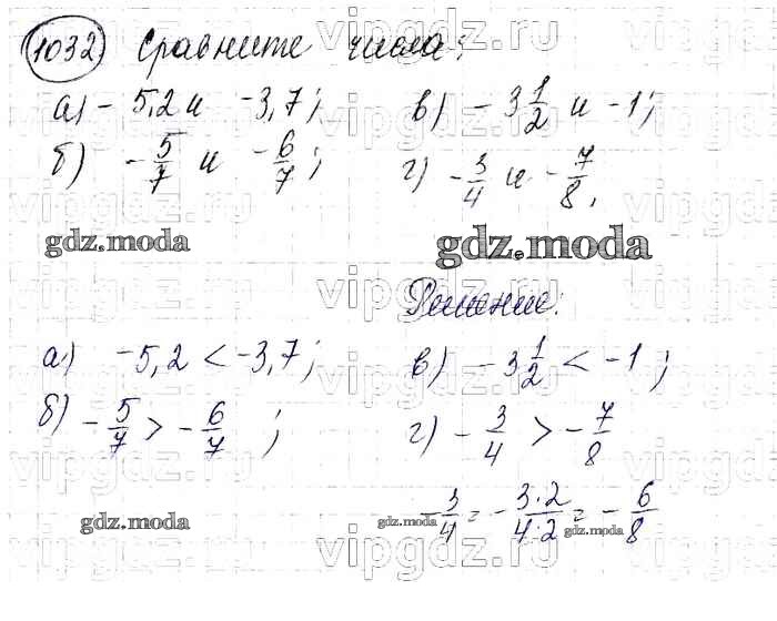 ОТВЕТ на задание № 1032 Учебник по Математике 6 класс Виленкин
