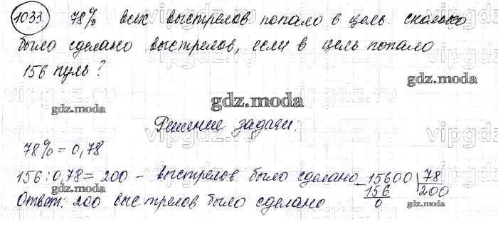 ОТВЕТ на задание № 1033 Учебник по Математике 6 класс Виленкин