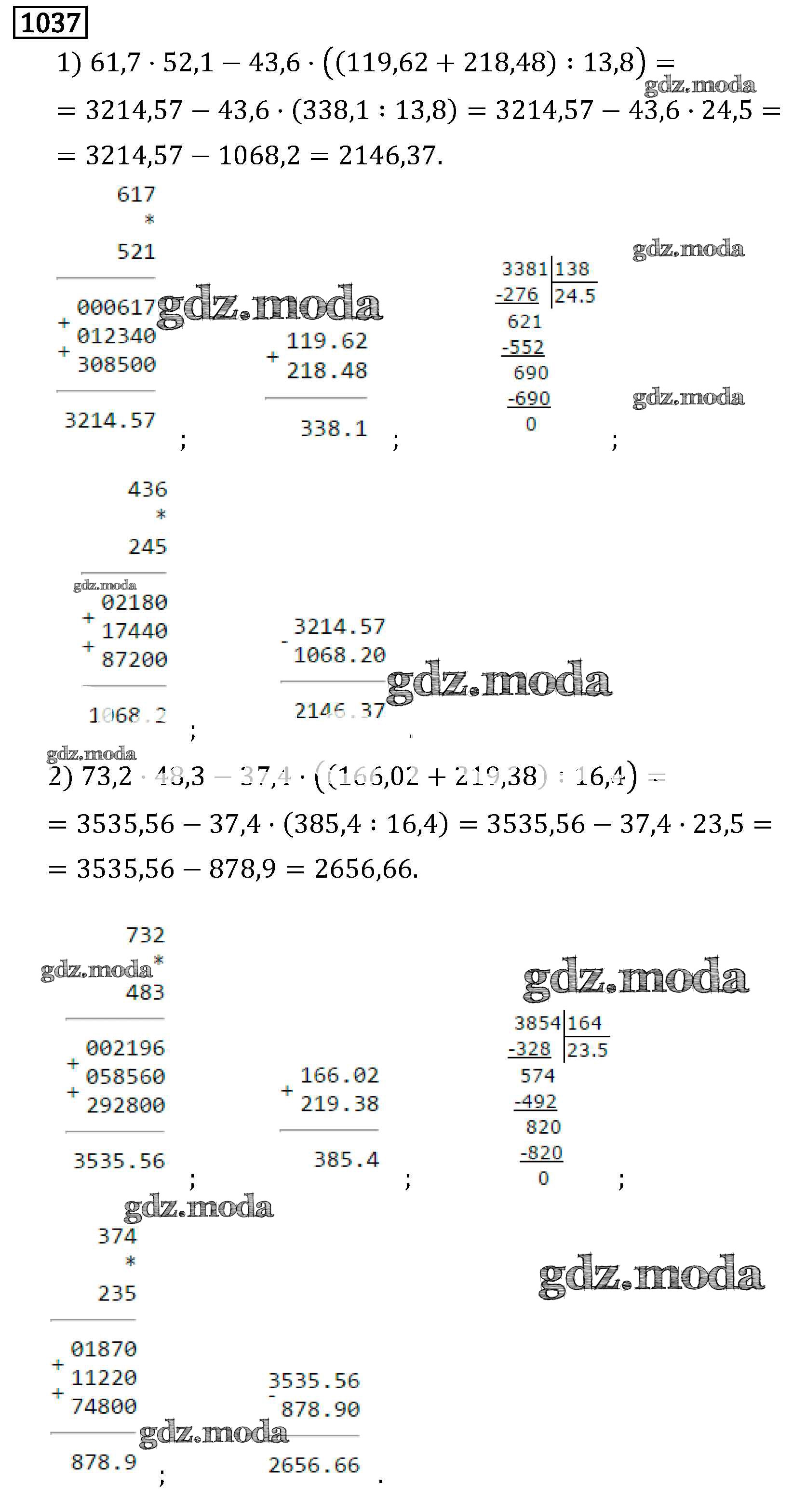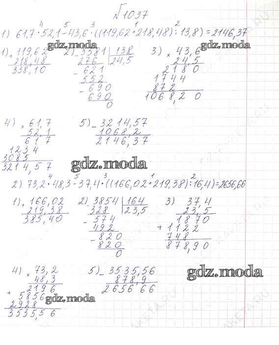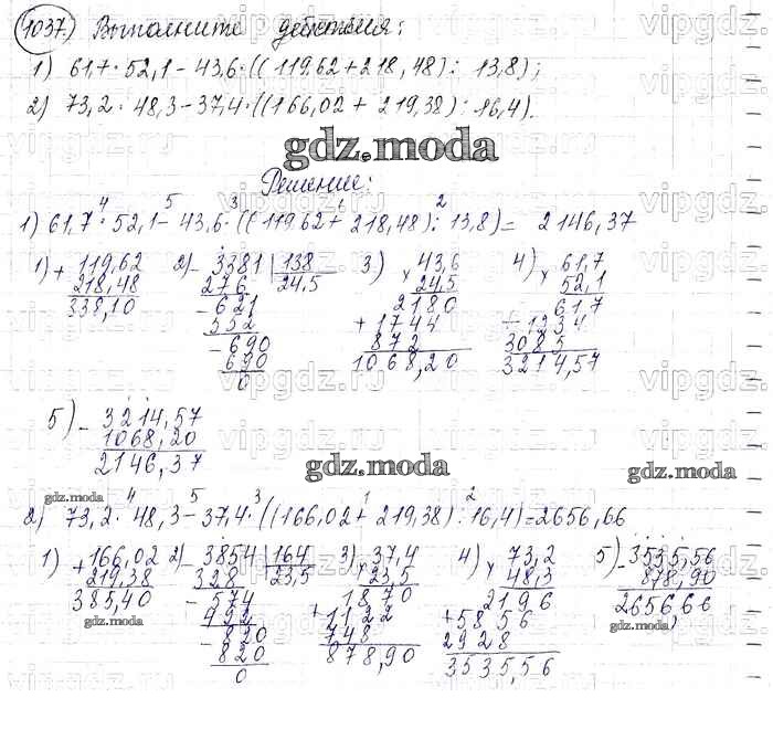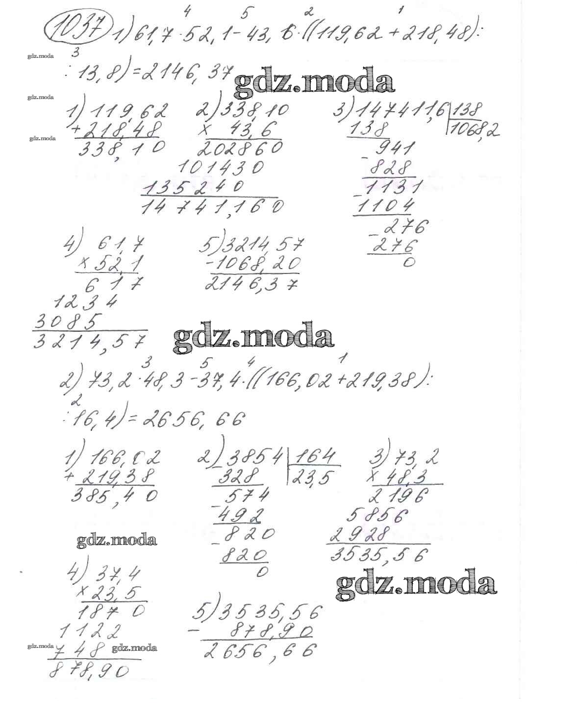 ОТВЕТ на задание № 1037 Учебник по Математике 6 класс Виленкин