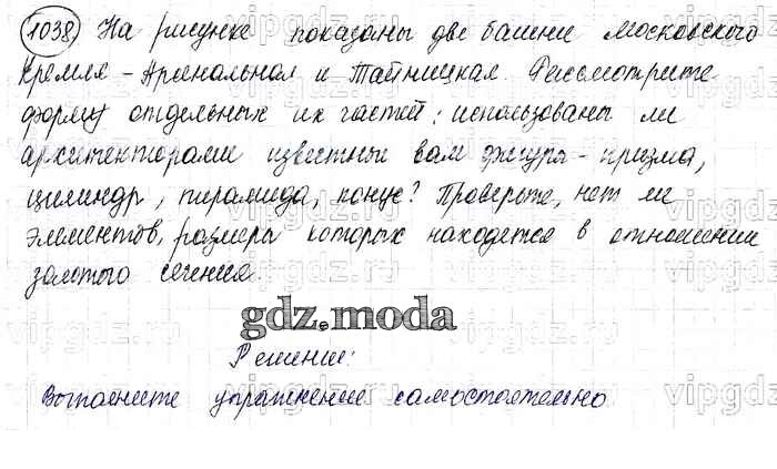 ОТВЕТ на задание № 1038 Учебник по Математике 6 класс Виленкин