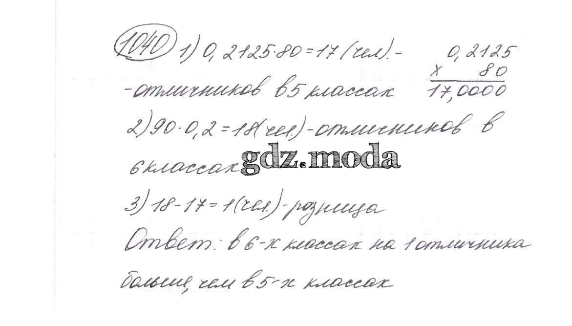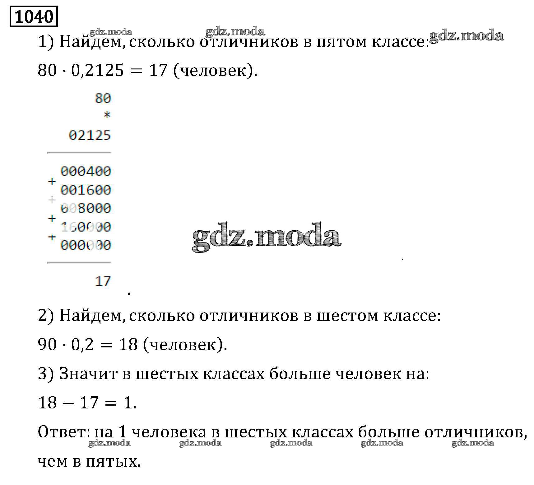 ОТВЕТ на задание № 1040 Учебник по Математике 6 класс Виленкин