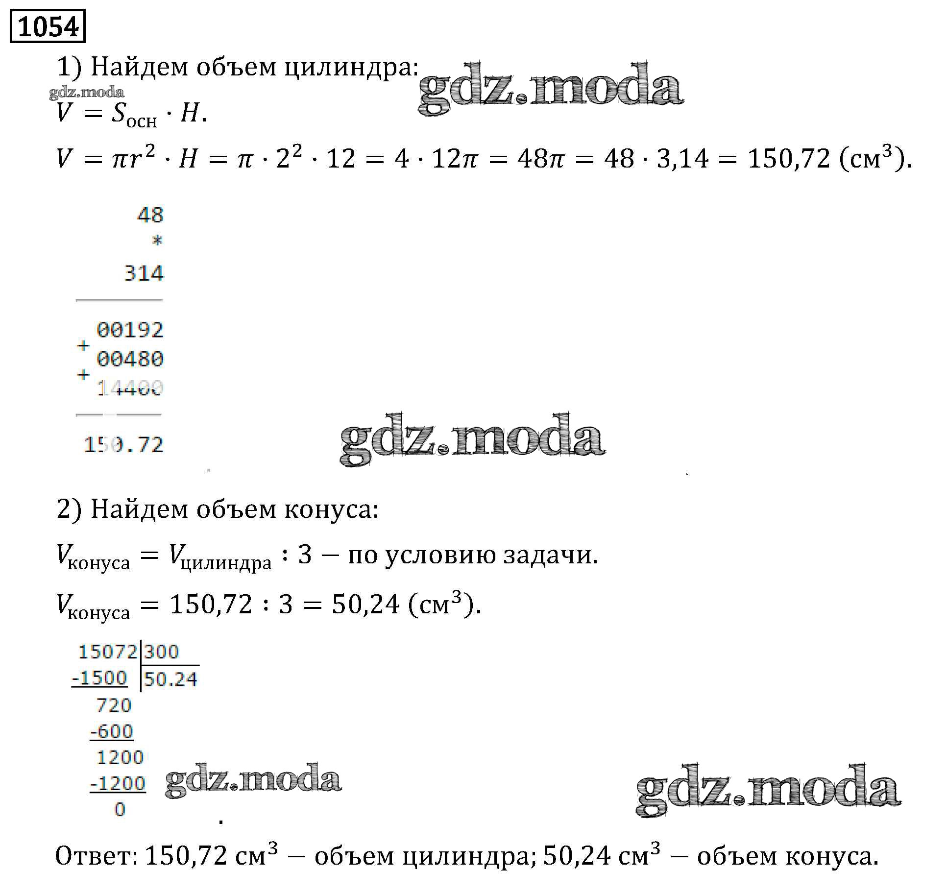 ОТВЕТ на задание № 1054 Учебник по Математике 6 класс Виленкин