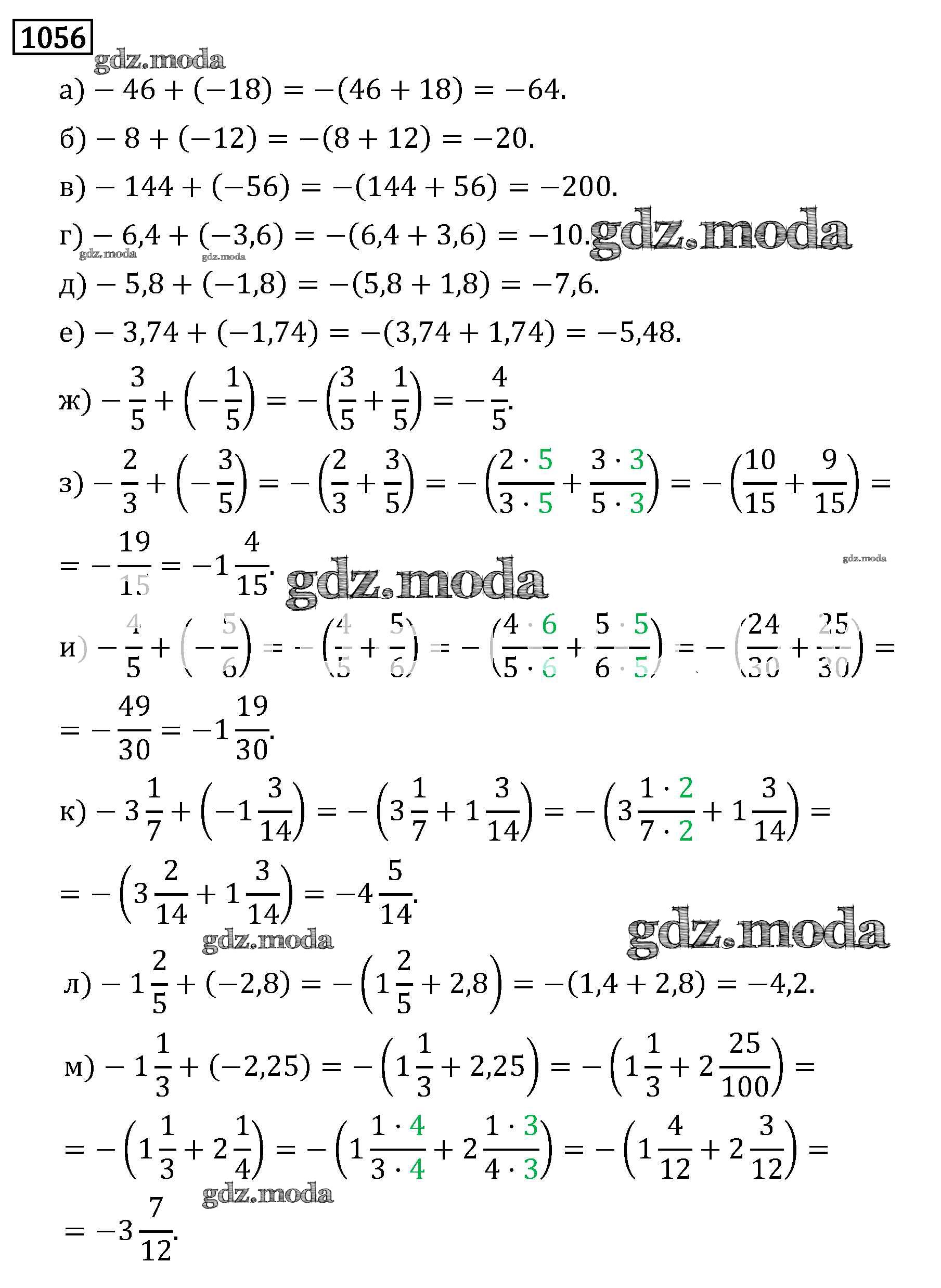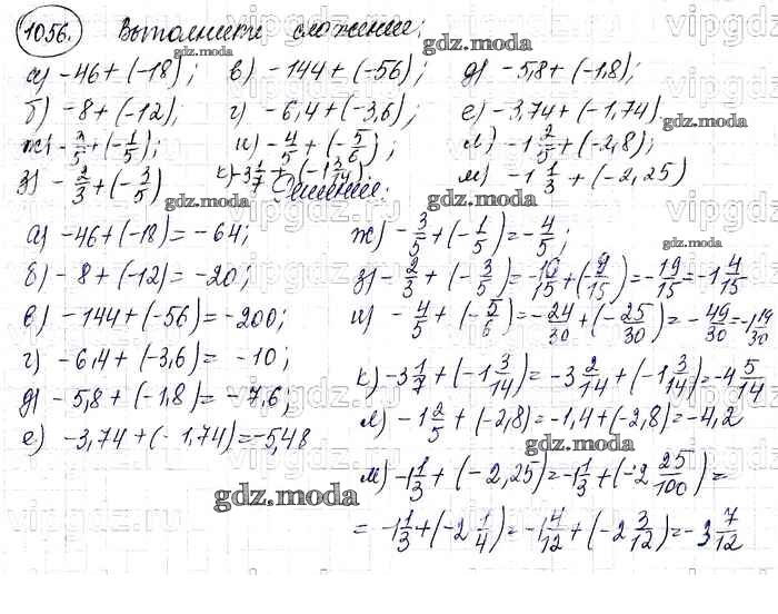 ОТВЕТ на задание № 1056 Учебник по Математике 6 класс Виленкин