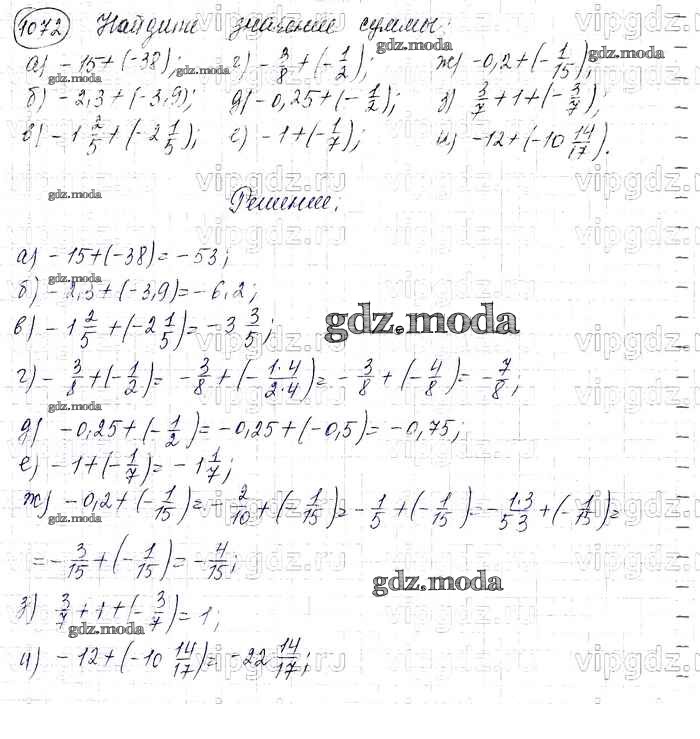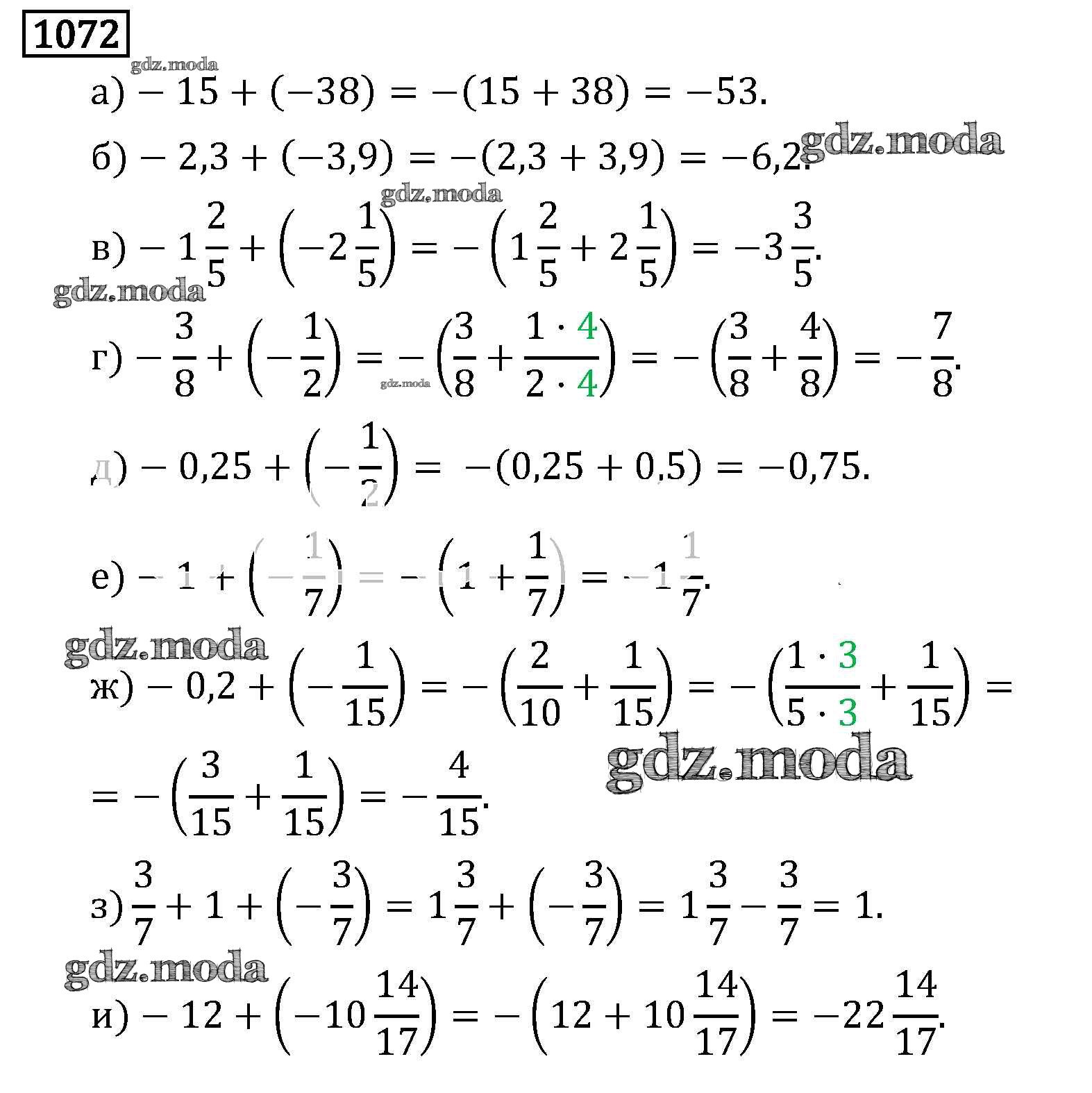 ОТВЕТ на задание № 1072 Учебник по Математике 6 класс Виленкин