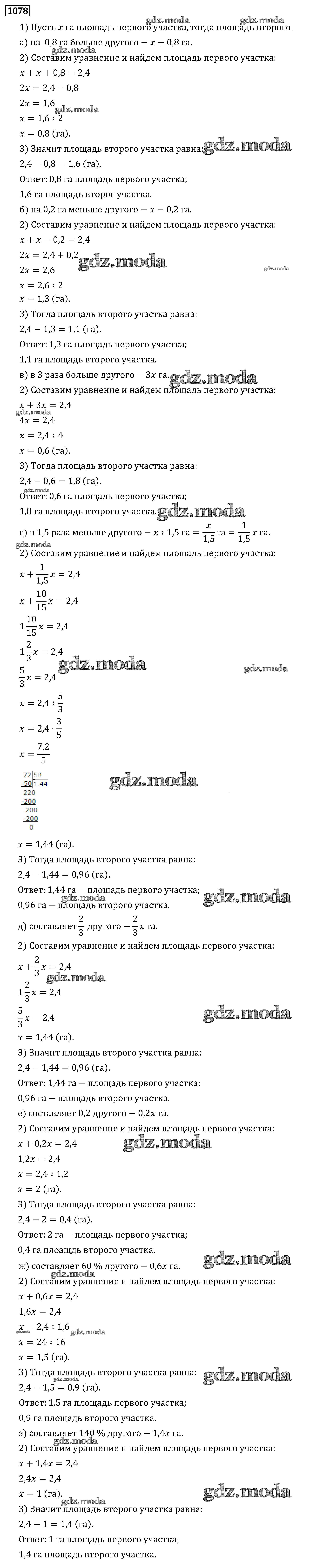 ОТВЕТ на задание № 1078 Учебник по Математике 6 класс Виленкин