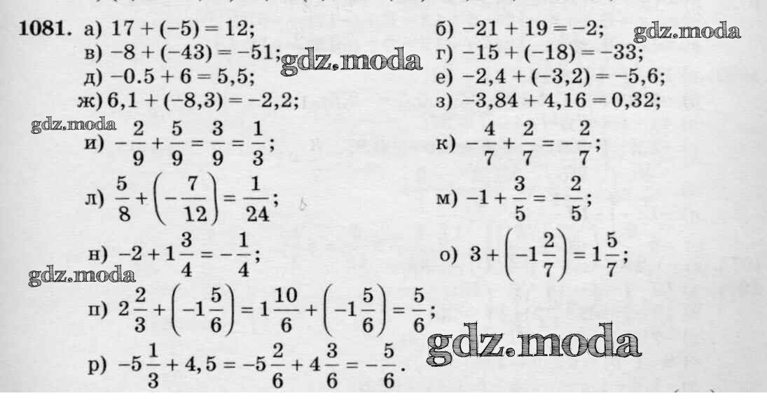ОТВЕТ на задание № 1081 Учебник по Математике 6 класс Виленкин
