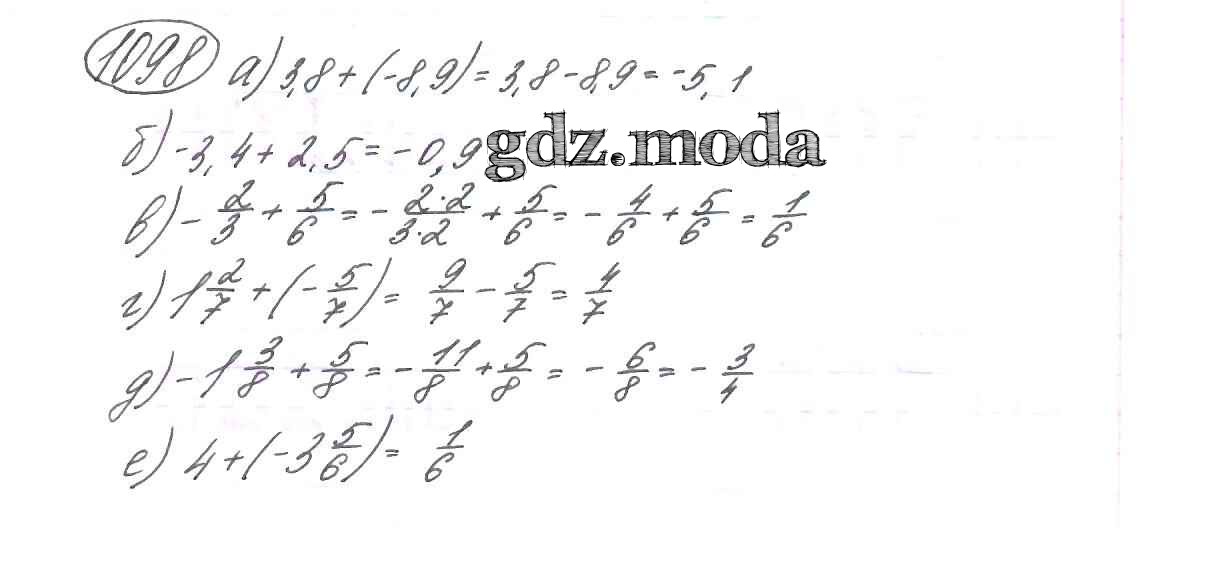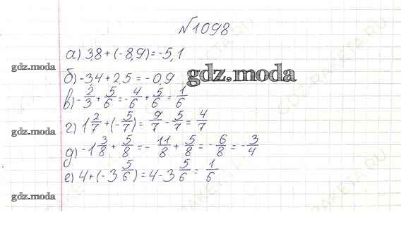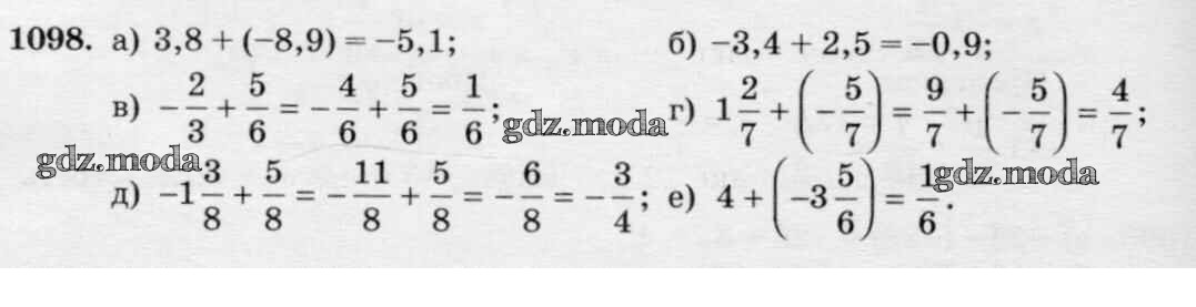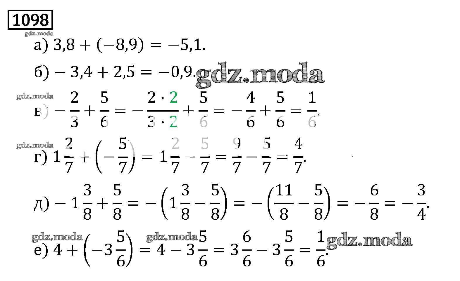 ОТВЕТ на задание № 1098 Учебник по Математике 6 класс Виленкин