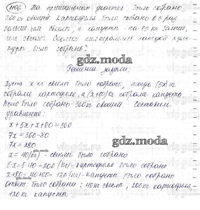 ОТВЕТ на задание № 1106 Учебник по Математике 6 класс Виленкин