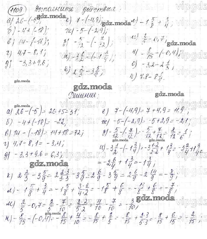 ОТВЕТ на задание № 1109 Учебник по Математике 6 класс Виленкин