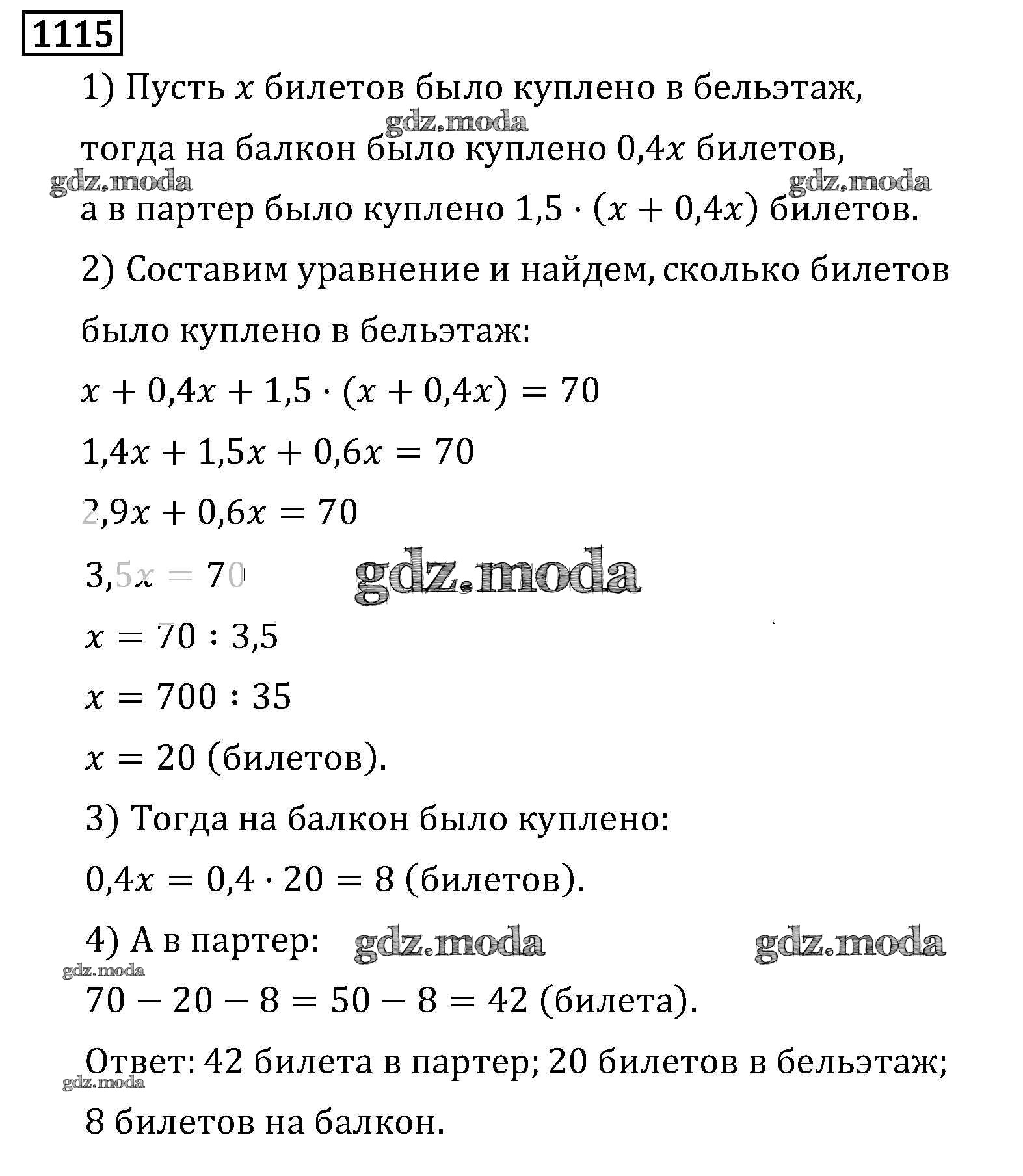 ОТВЕТ на задание № 1115 Учебник по Математике 6 класс Виленкин
