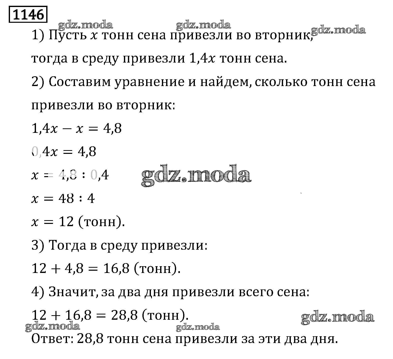 ОТВЕТ на задание № 1146 Учебник по Математике 6 класс Виленкин