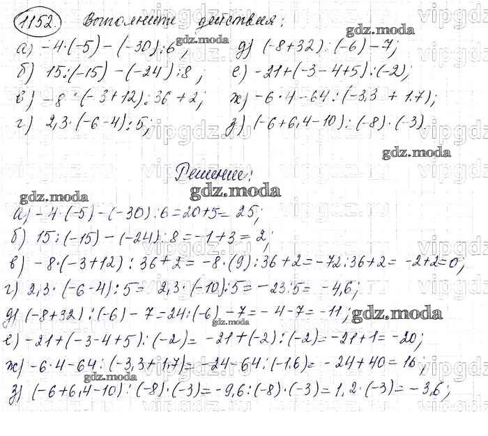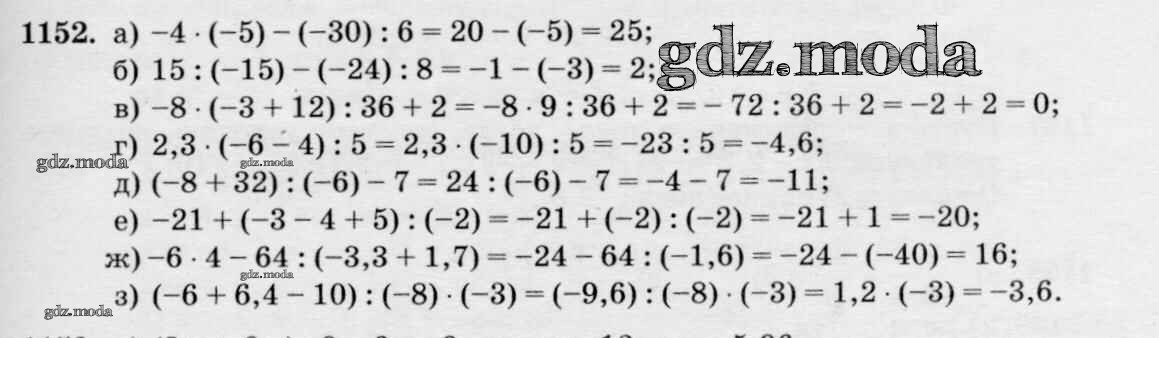 ОТВЕТ на задание № 1152 Учебник по Математике 6 класс Виленкин