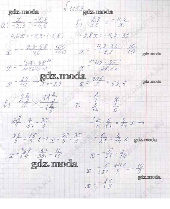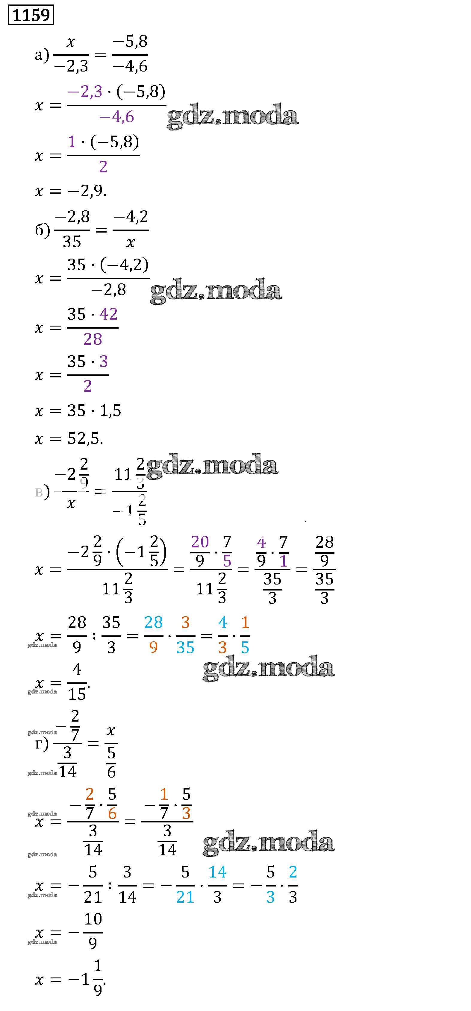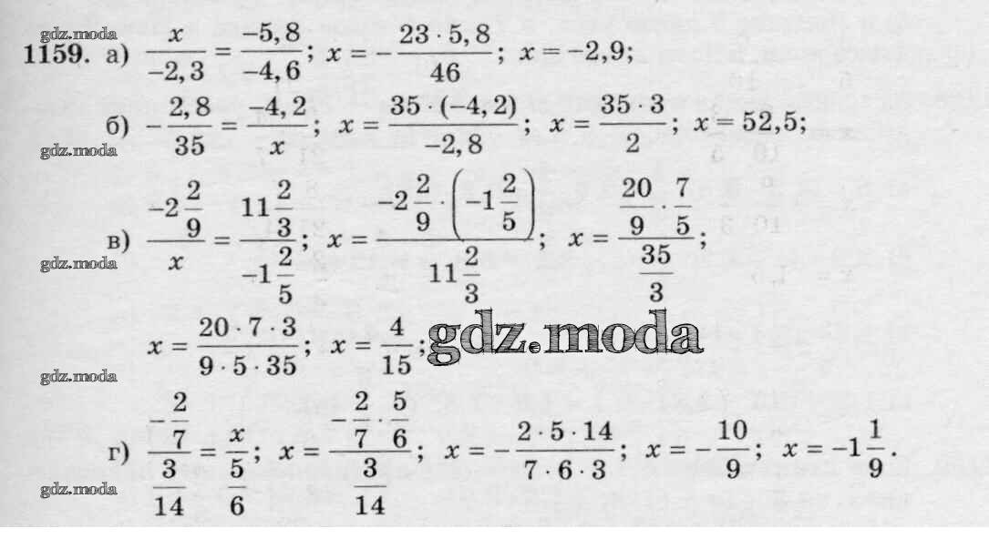 ОТВЕТ на задание № 1159 Учебник по Математике 6 класс Виленкин
