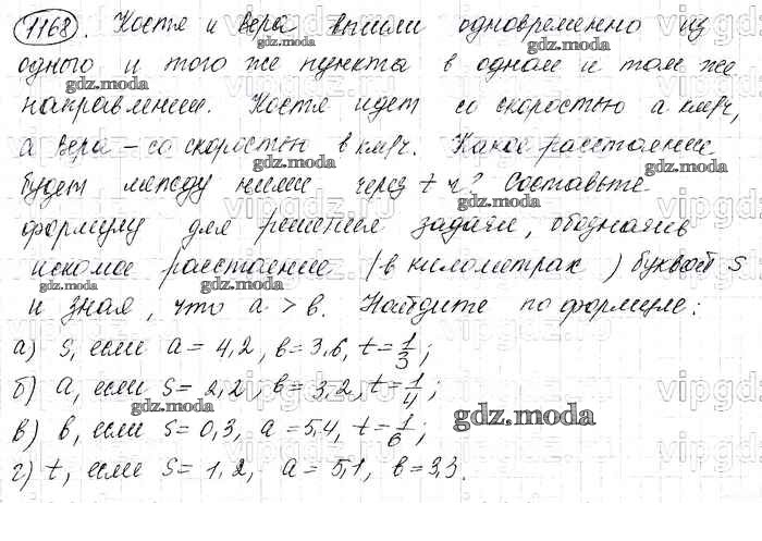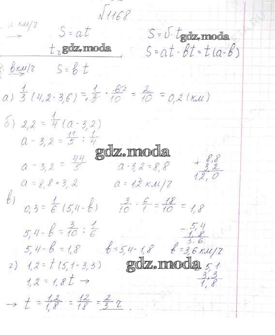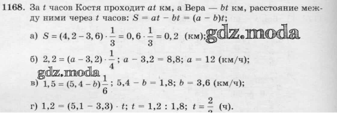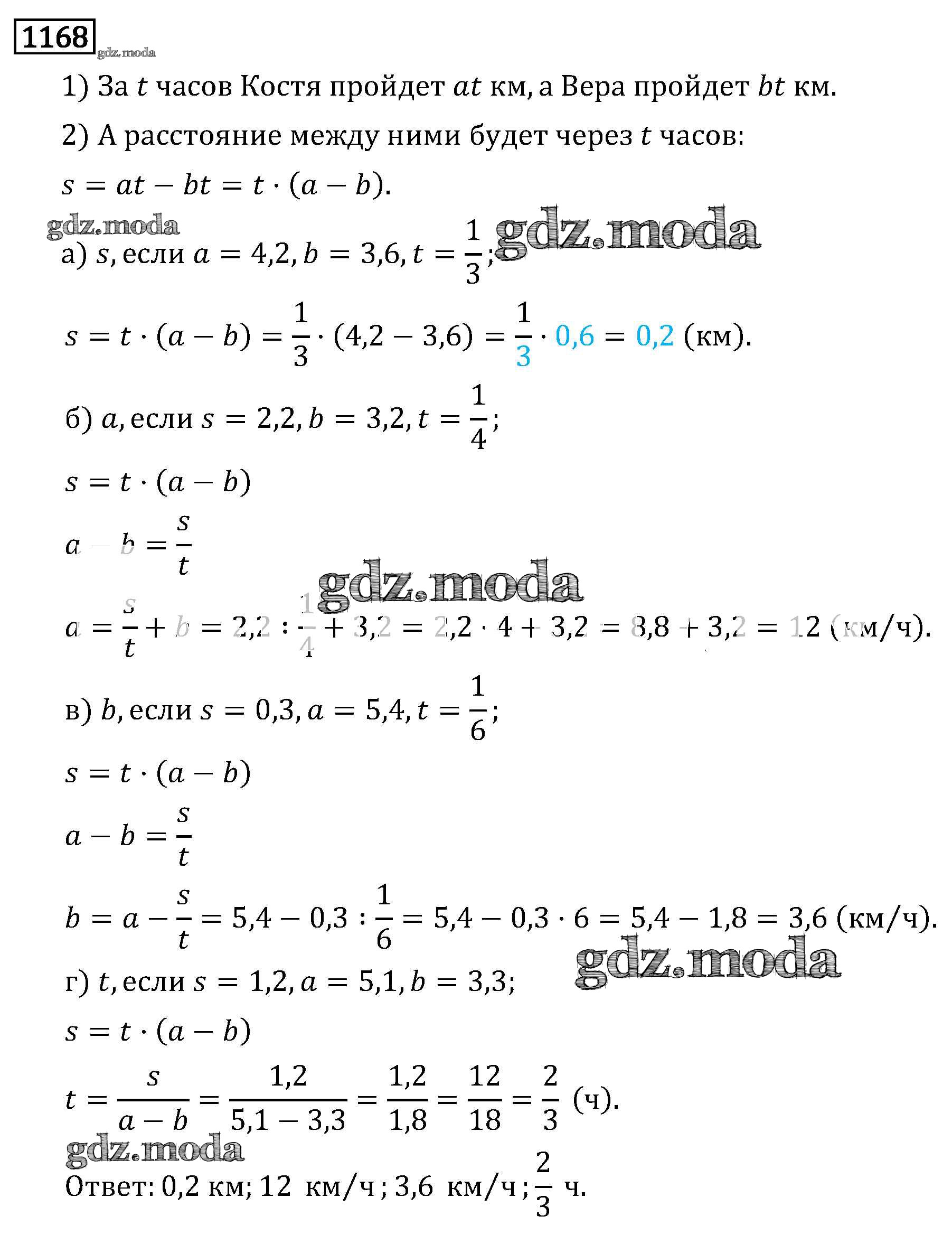 ОТВЕТ на задание № 1168 Учебник по Математике 6 класс Виленкин