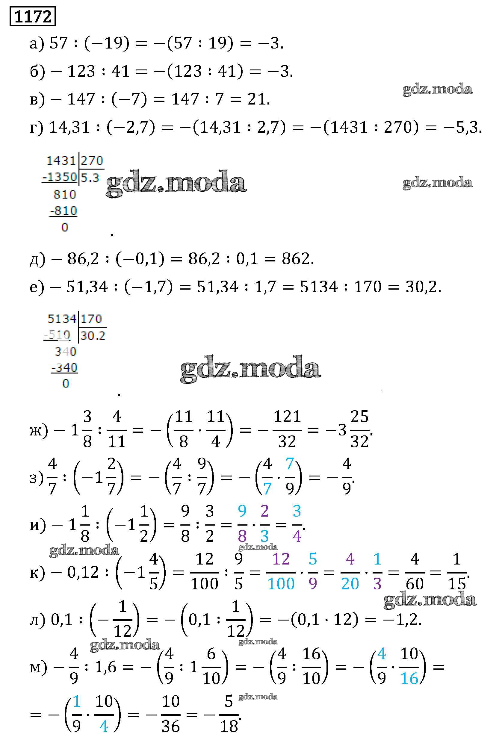 ОТВЕТ на задание № 1172 Учебник по Математике 6 класс Виленкин