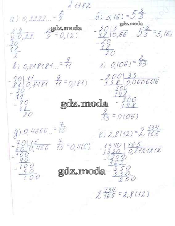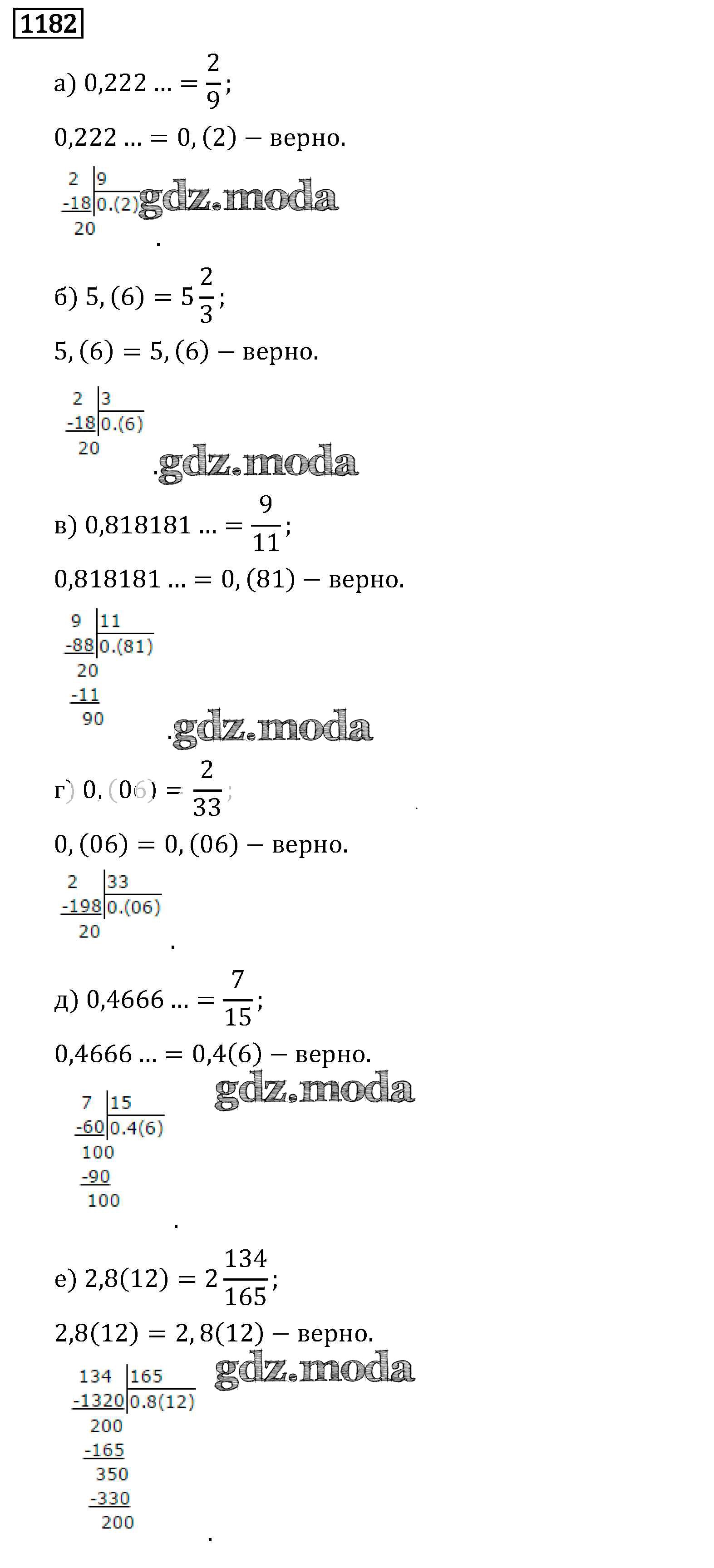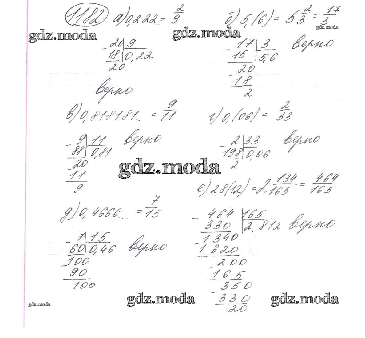ОТВЕТ на задание № 1182 Учебник по Математике 6 класс Виленкин