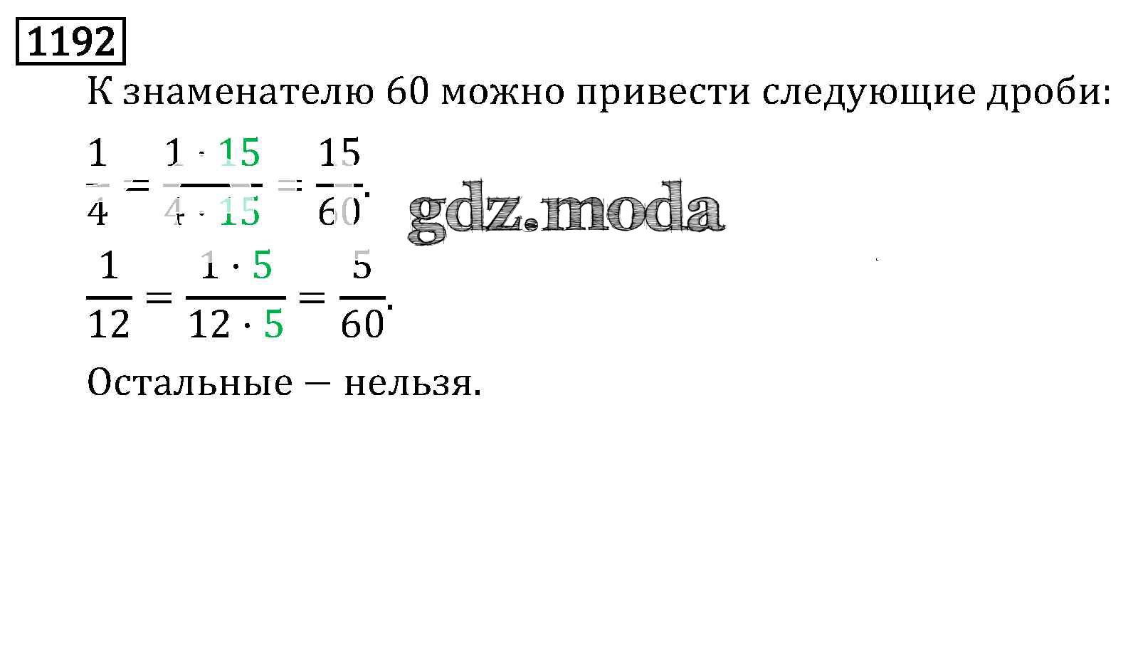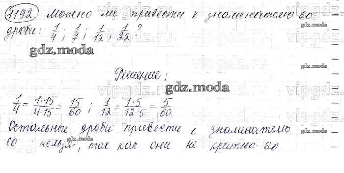 ОТВЕТ на задание № 1192 Учебник по Математике 6 класс Виленкин