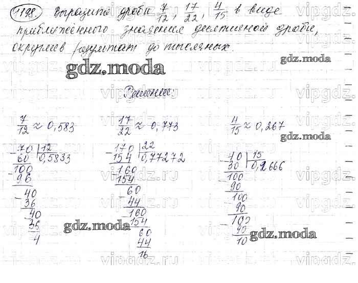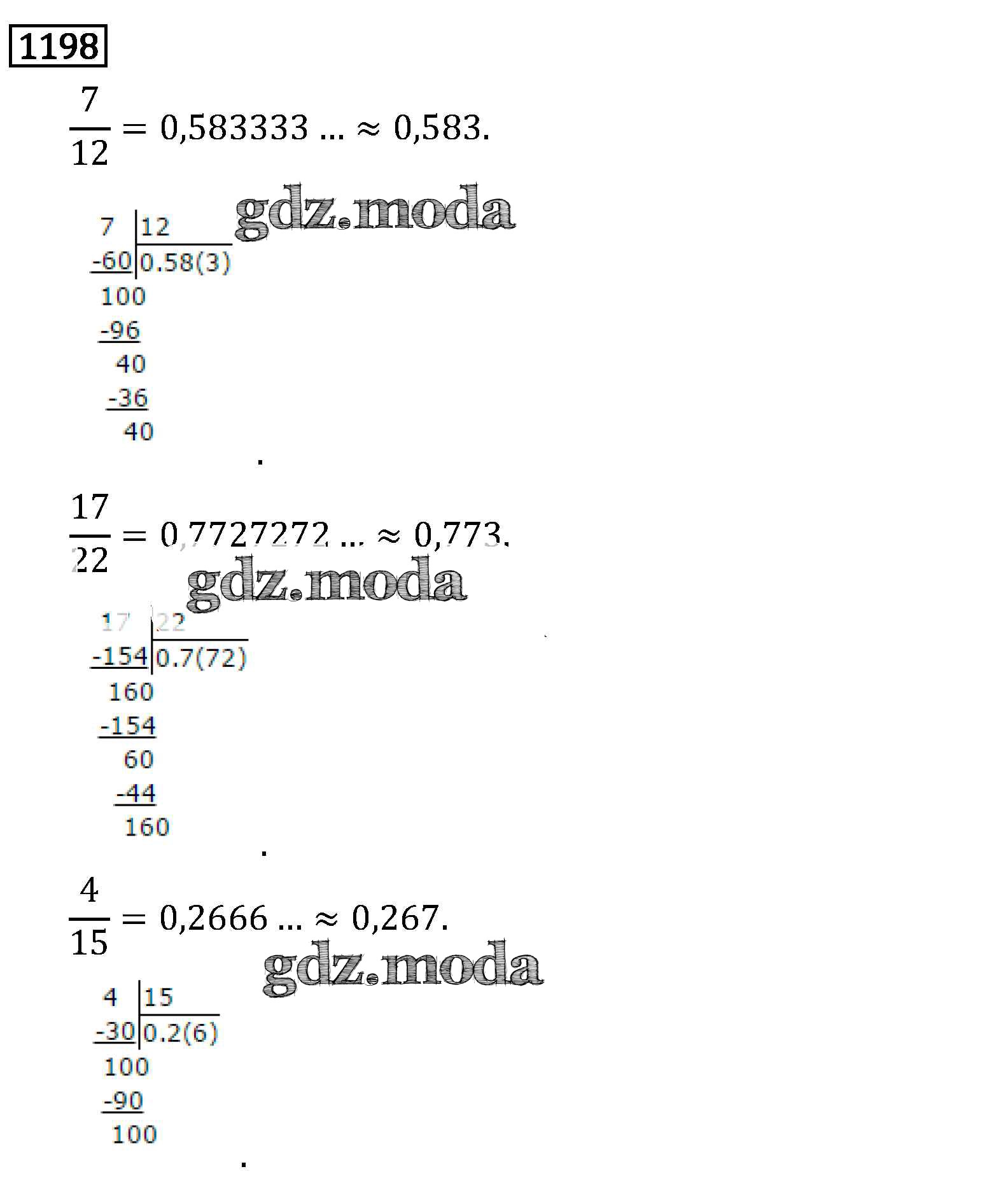 ОТВЕТ на задание № 1198 Учебник по Математике 6 класс Виленкин