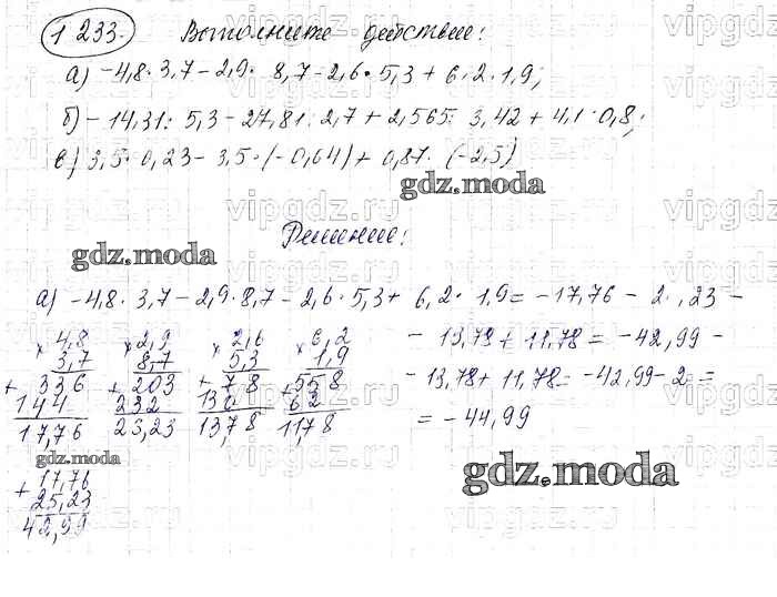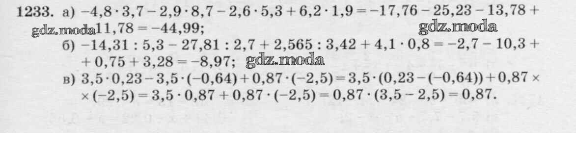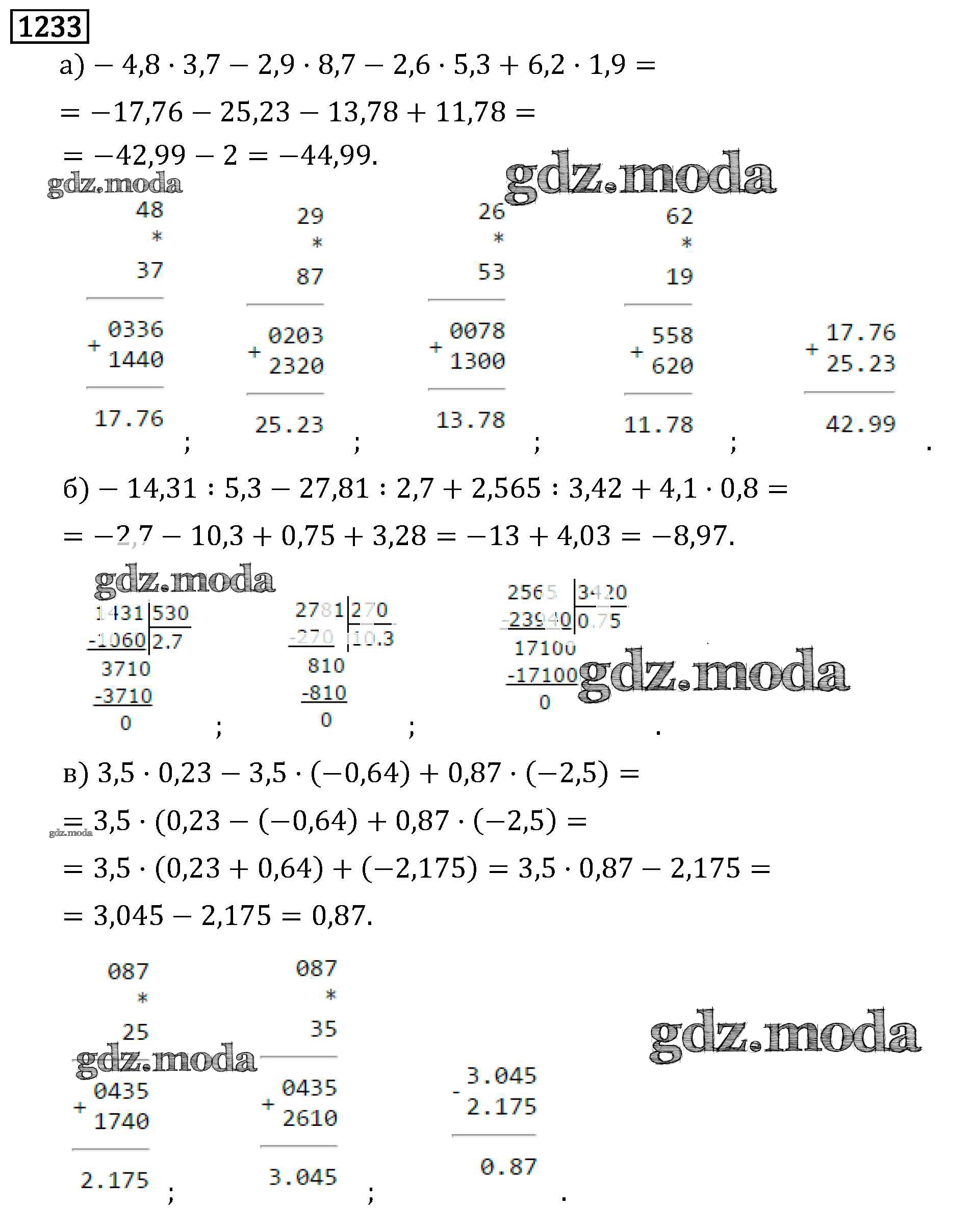 ОТВЕТ на задание № 1233 Учебник по Математике 6 класс Виленкин