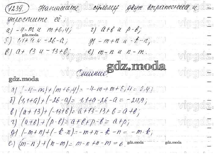 ОТВЕТ на задание № 1239 Учебник по Математике 6 класс Виленкин