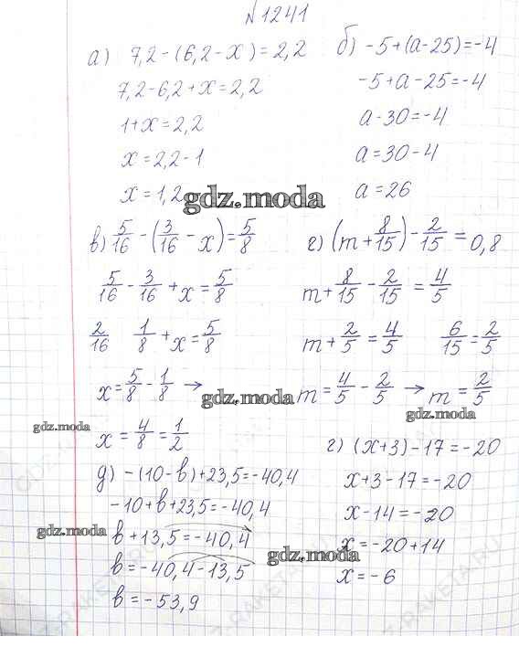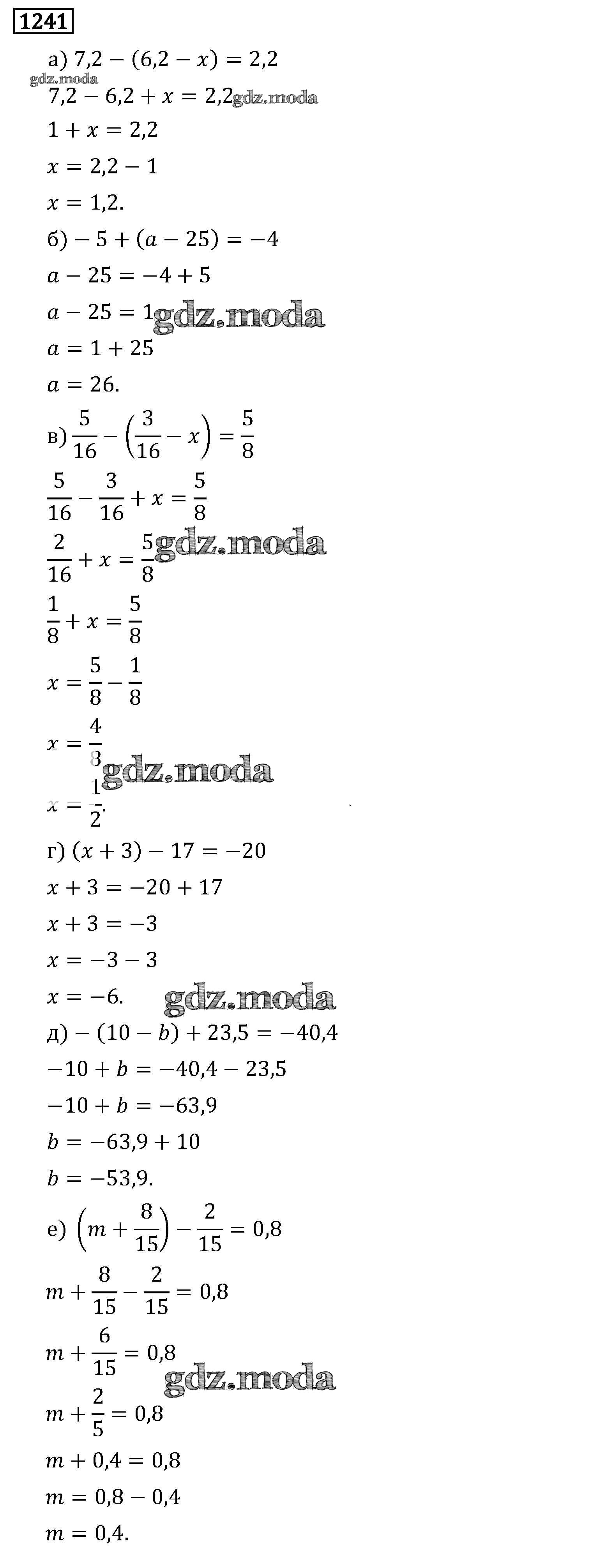 ОТВЕТ на задание № 1241 Учебник по Математике 6 класс Виленкин