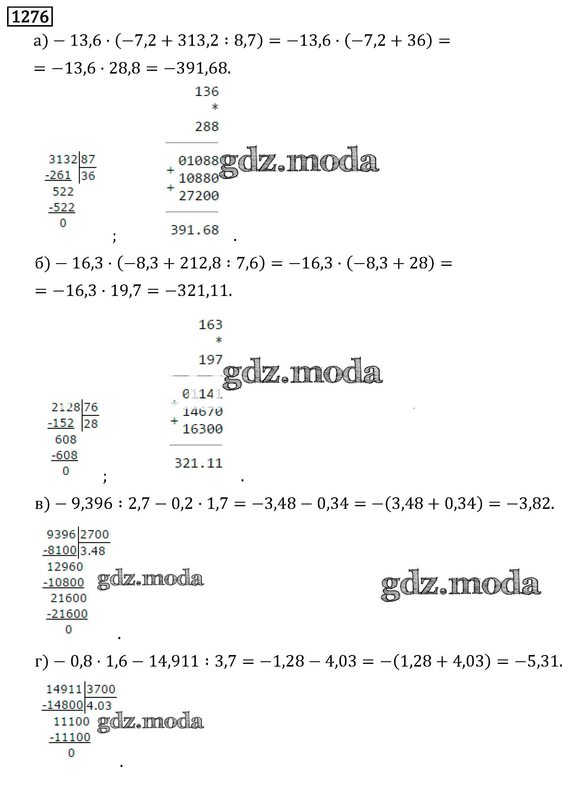 ОТВЕТ на задание № 1276 Учебник по Математике 6 класс Виленкин